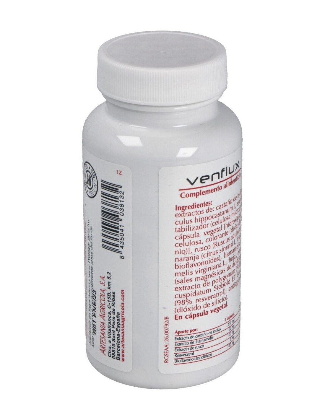 Complemento alimenticio formulado a base de extractos de castaño de indias, hamamelis y rusco. Contribuye a la oxigenación normal de los tejidos del cuerpo.