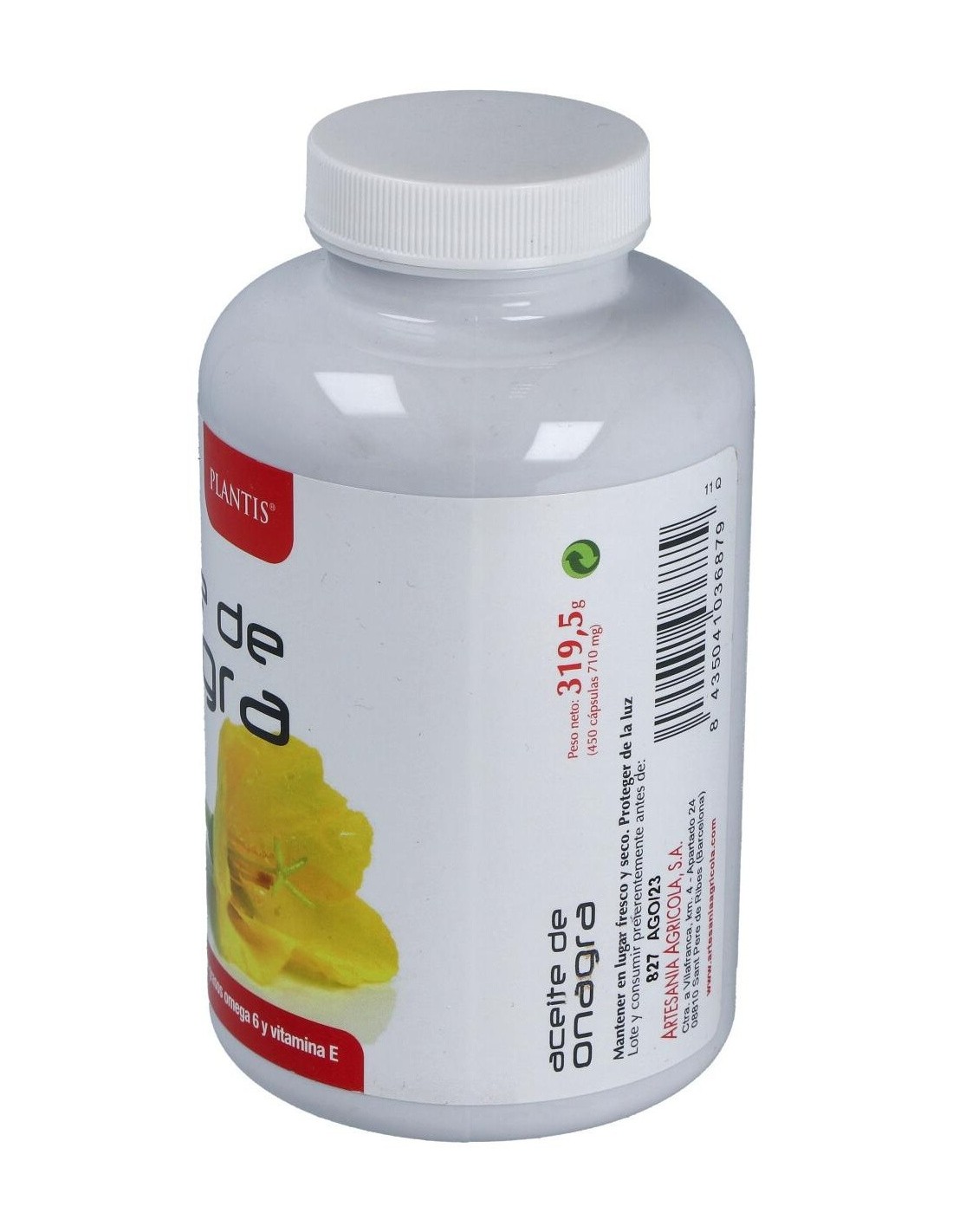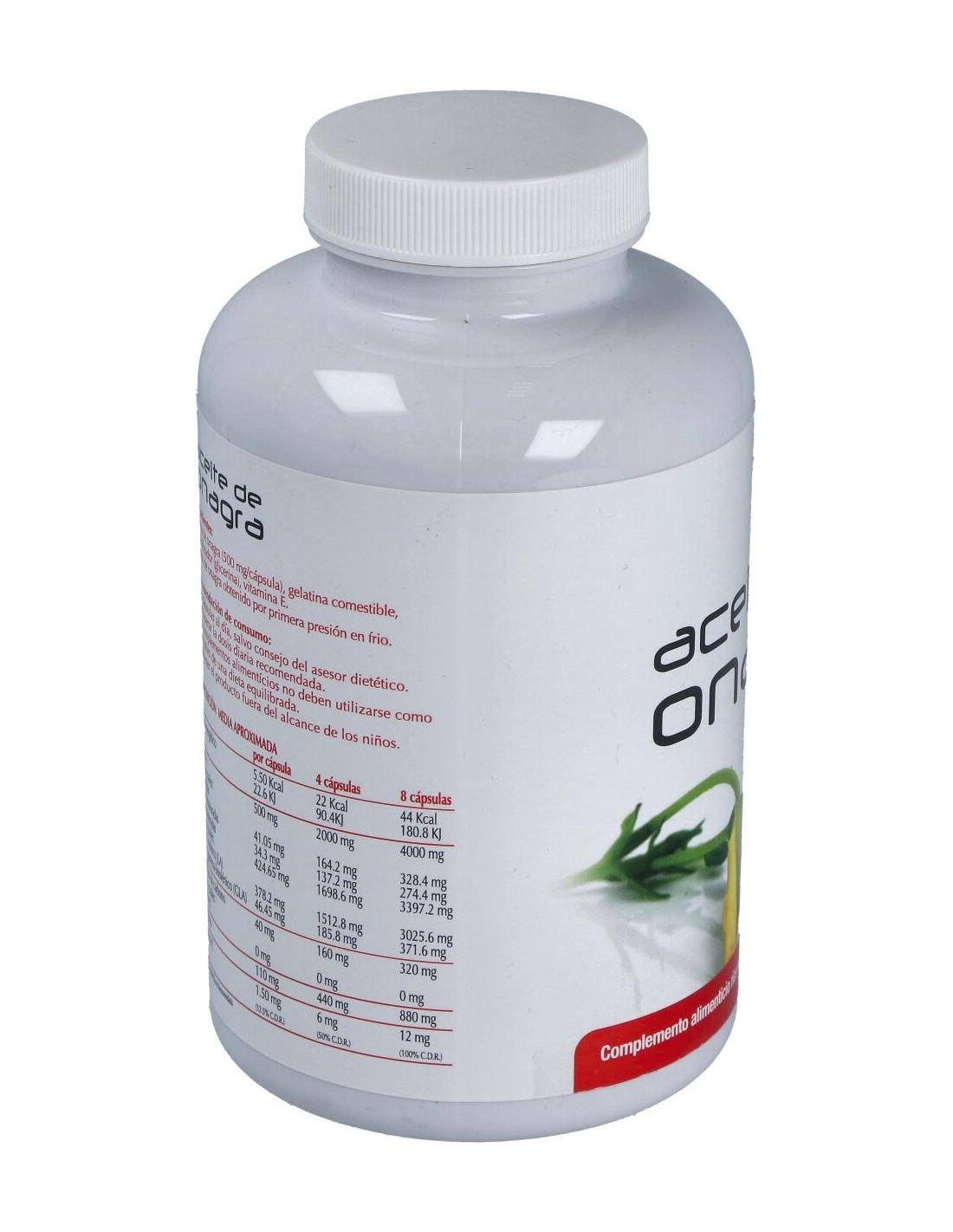 Vit.E 10 mg.(10 u.i.)/ aceite de onagra 500 mg. extraído por primera presión de sus semillas con la siguiente fracción lipídica: ác.gr.sat. (ácido palmítico 5-6%: ácido esteárico 1-2%), monosat. (ácido oléico 10-14%), poliinsat. (ácido linoleico 69-73%, ácido gammalinolénico 8% o superior)