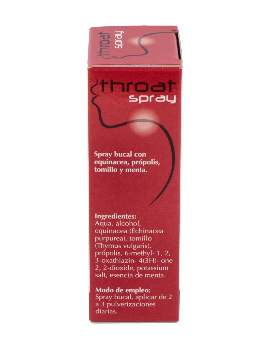 Spray a base de propóleo para aliviar las molestias de la garganta. Con propóleo que posee propiedades medicinales, antibióticas (fungicida y bacteriana), cicatrizantes, antiinflamatorias, analgésicas, antialérgicas, epitelizantes y anestésicas. Con menta que ayuda a aliviar los dolores de cabeza y se utiliza en tratamiento contra la gripe y resfriados.