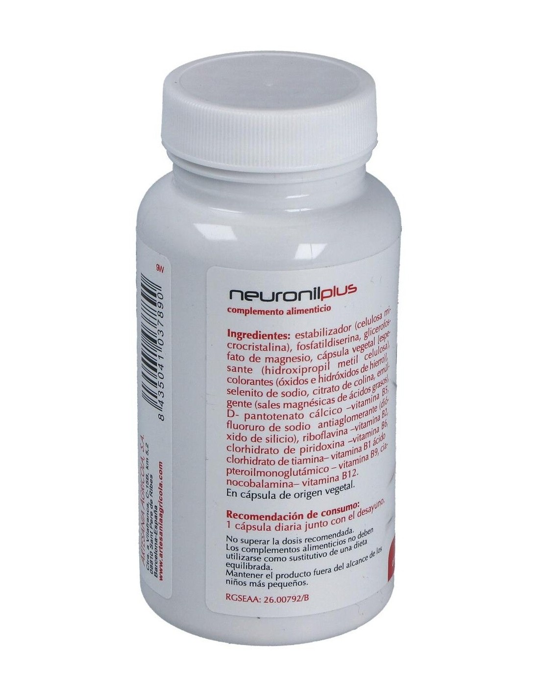 Fluor, 1.75mg Selenio, 27.8 Ug Vitamina B2, 1.4mg Vitamina B1, 1.1 mg Vitamina B12, 2.5 Ug Vitamina B6, 1.4 mg Vitamina B9, 200 Ug Vitamina B5, 6 mg Fosfatidilserina, 100 mg Citrato De Colina, 20 mg Glicerofosfato De Magnesio, 100 mg.