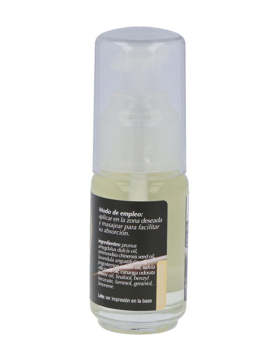 Prunus anygdalus dulcis oil, simmondsia chinensis seed oil, lavandula angustifolia oil, pogostemon cablin oil, salvia officinalis oil, cananga odorata flower oil, linalool, benzyl benzoate, farnesol, geraniol. limonene.