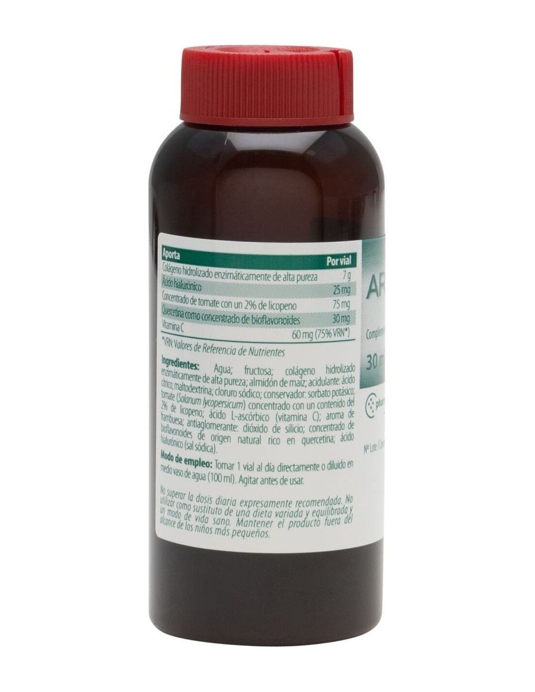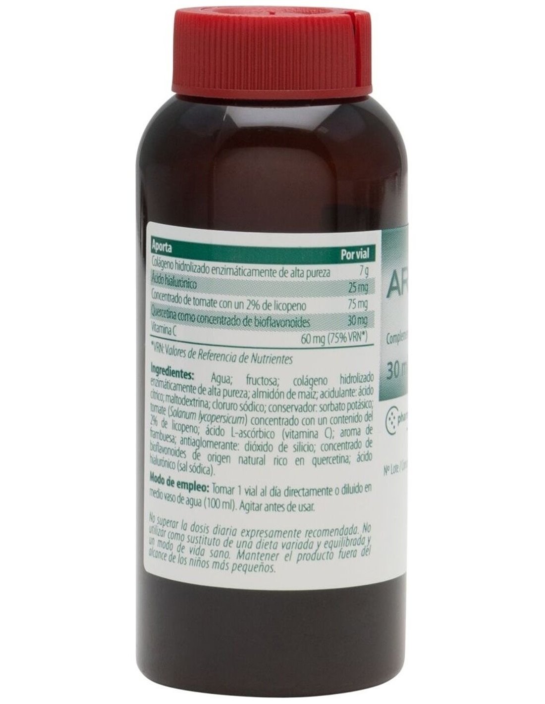ACCIÓN Y DESCRIPCIÓNComplemento alimenticio a base de colágeno hidrolizado enzimáticamente de alta pureza y ácido hialurónico, con tomate concentrado al 2% de licopeno, Vitamina C y concentrado de bioflavonoides de origen natural rico en quercetina.