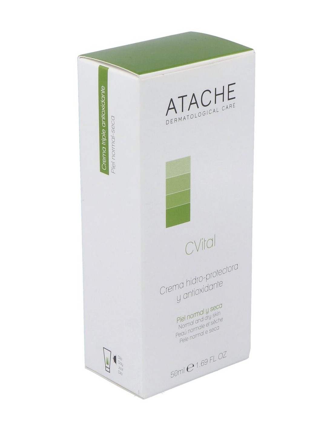 Atache CVital Crema 50ml crema hidratante y protectora que nos aporta toda la firmeza e hidratación gracias a sus activos de Aceite de Jojoba y Ácido Glicólico, y además retienen la humedad y penetra en las capas más profundas de la piel favoreciendo la exfoliación natural.¿Qué aporta Atache CVital Crema 50ml?Mejorar visiblemente su textura y tacto.