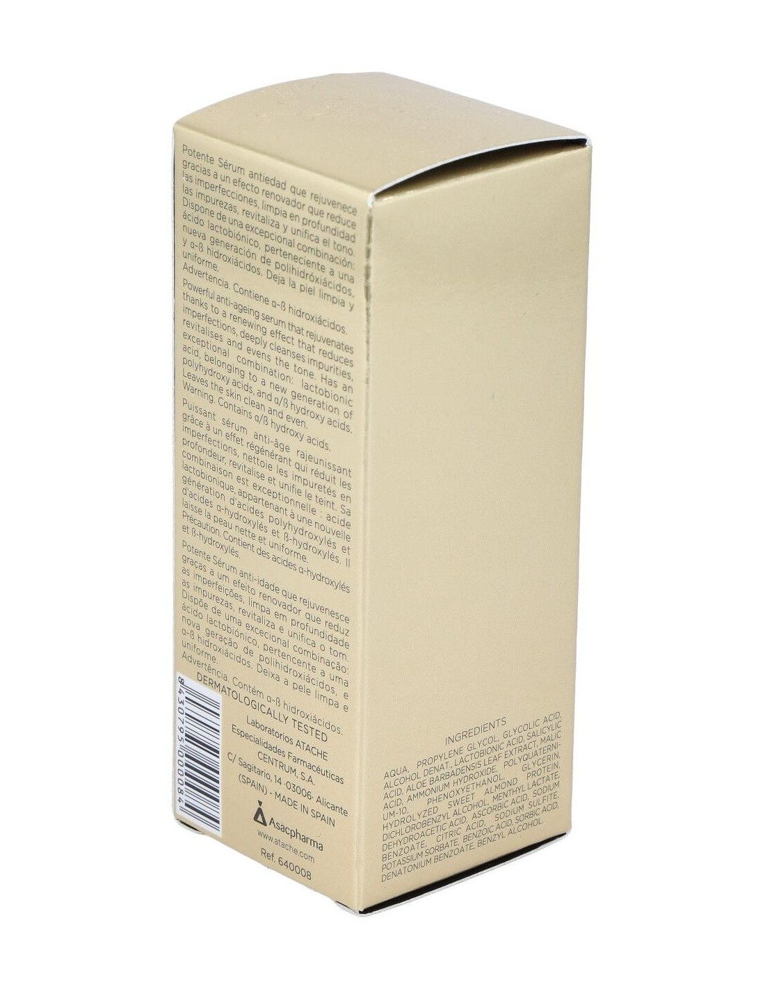 Potente sérum antiedad, formulado con una excepcional combinación alfa, beta y polihidroxácidos, que rejuvenece gracias a un efecto renovador de la piel. Reduce las imperfecciones, limpia en profundidad las impurezas, revitaliza y unifica el tono. Contiene activos que adaptan a 3,5 el pH de la fórmula, ajustándola a las necesidades específicas de la piel, lo que permite que los hidroxiácidos realicen la función deseada y que aumente la sensación de confort tras la aplicación del sérum.