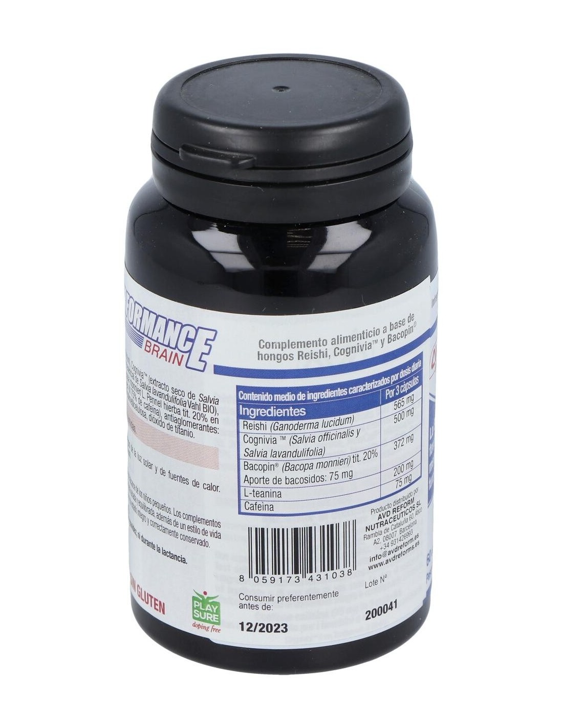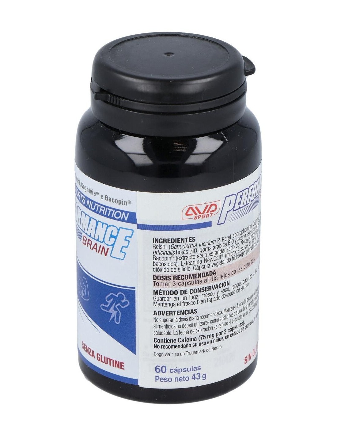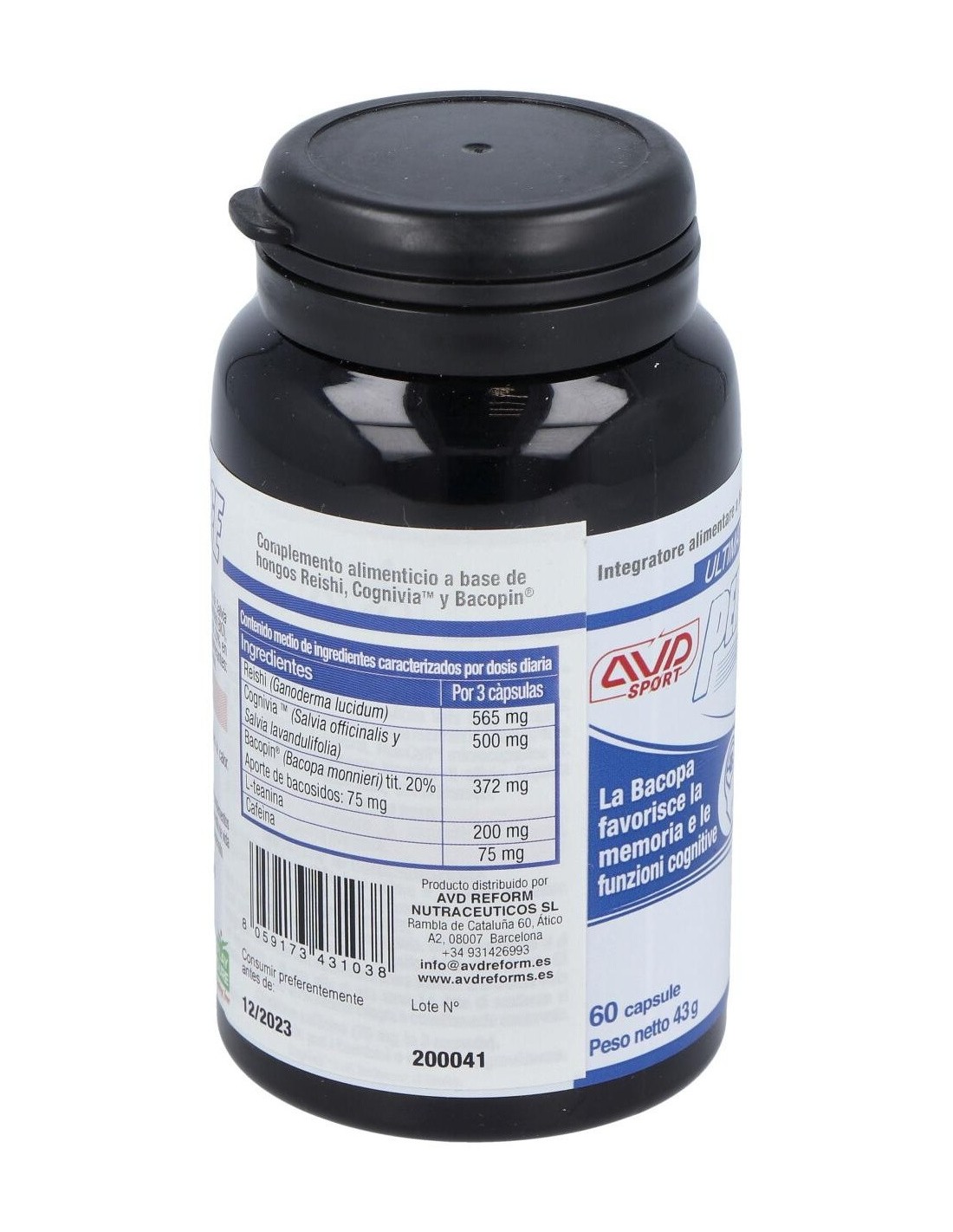 Reishi / Ganoderma lucidum BIO, Cognivia , Bacopin® Extracto estandarizado de Bacopa monnieri con tit. de 20% en bacósidos, L-Teanina, Newcaff® Cafeína microencapsulada. Antiaglomerantes: dióxido de silicio, cápsula vegetal de hidroxipropilmetilcelulosa, dióxido de titanio.