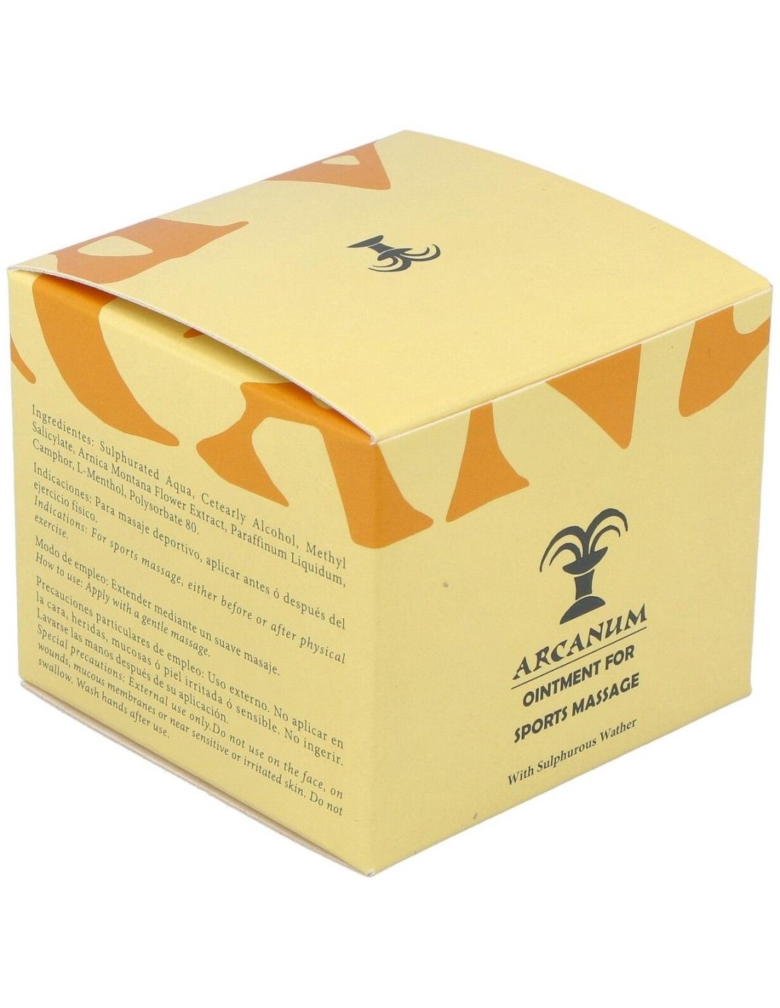 Arcanum Ungüento para Masaje Deportivo 100ml es una crema de textura ultraligera con agua sulfurada que ayuda a la regeneración celular e hidratación de la piel. Es apta para todo tipo de pieles y está indicada para procesos de etiología reumática y aplicarla en caso de contusiones, esguinces, fisioterapia o masaje.