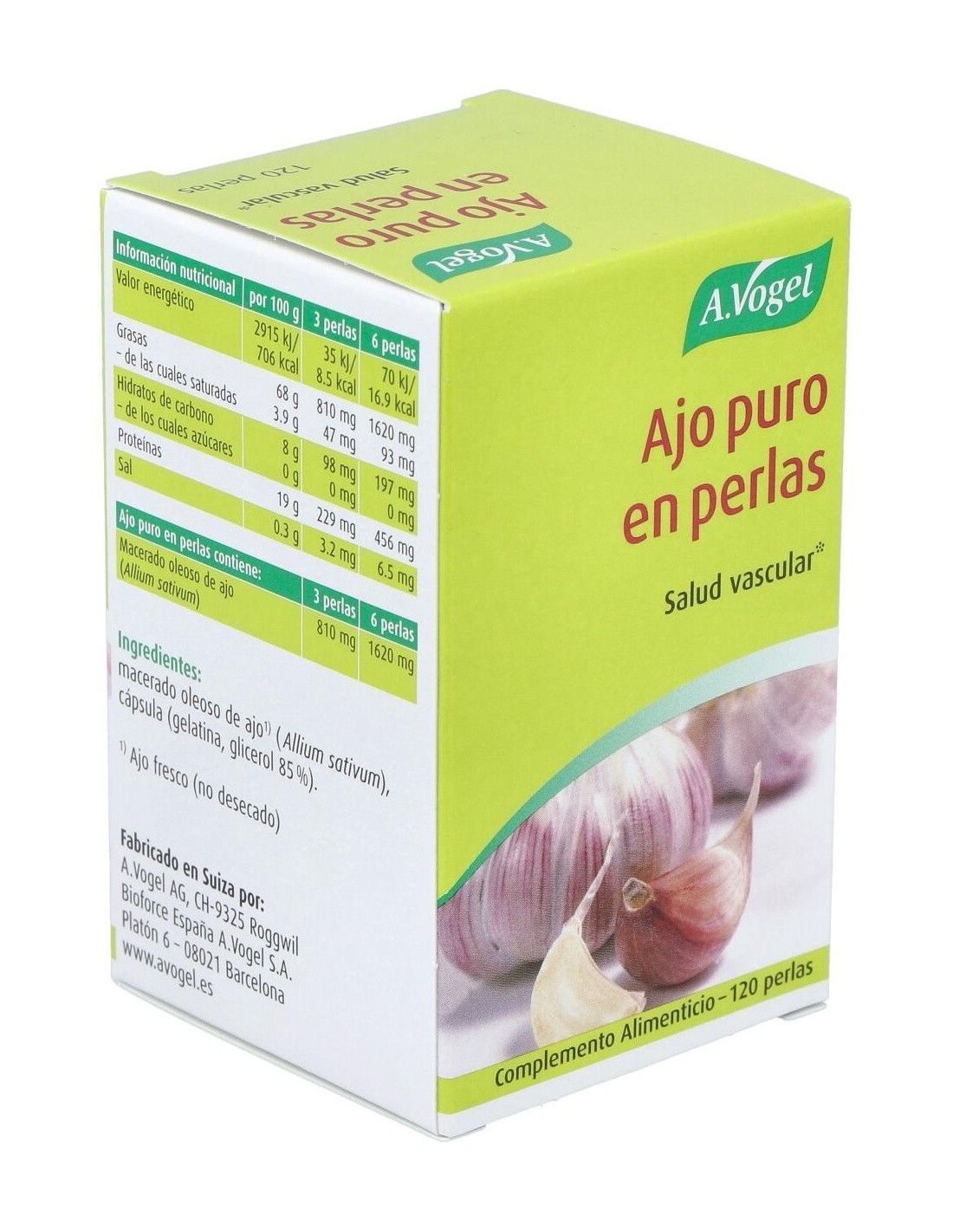 A. Vogel ajo puro es un complemento nutricional con grandes propiedades diuréticas, expectorantes y estimulantes mejorando aspectos de la salud humana, como la circulación, respiración, retención de líquidos...