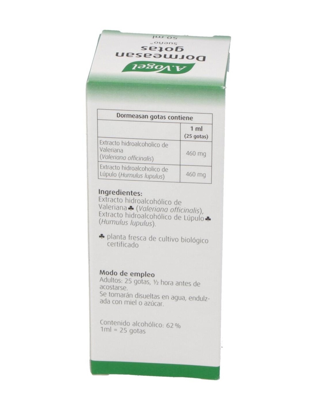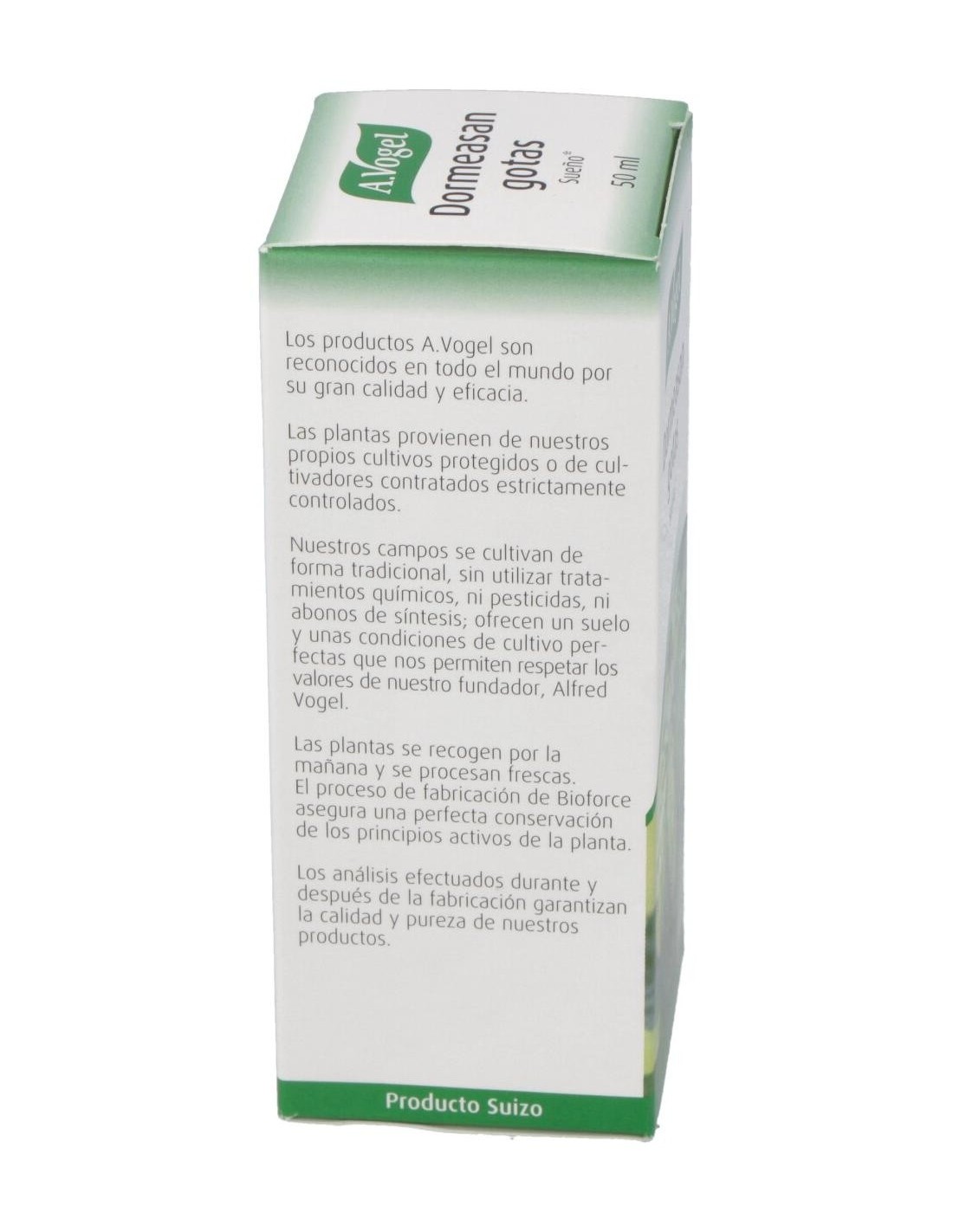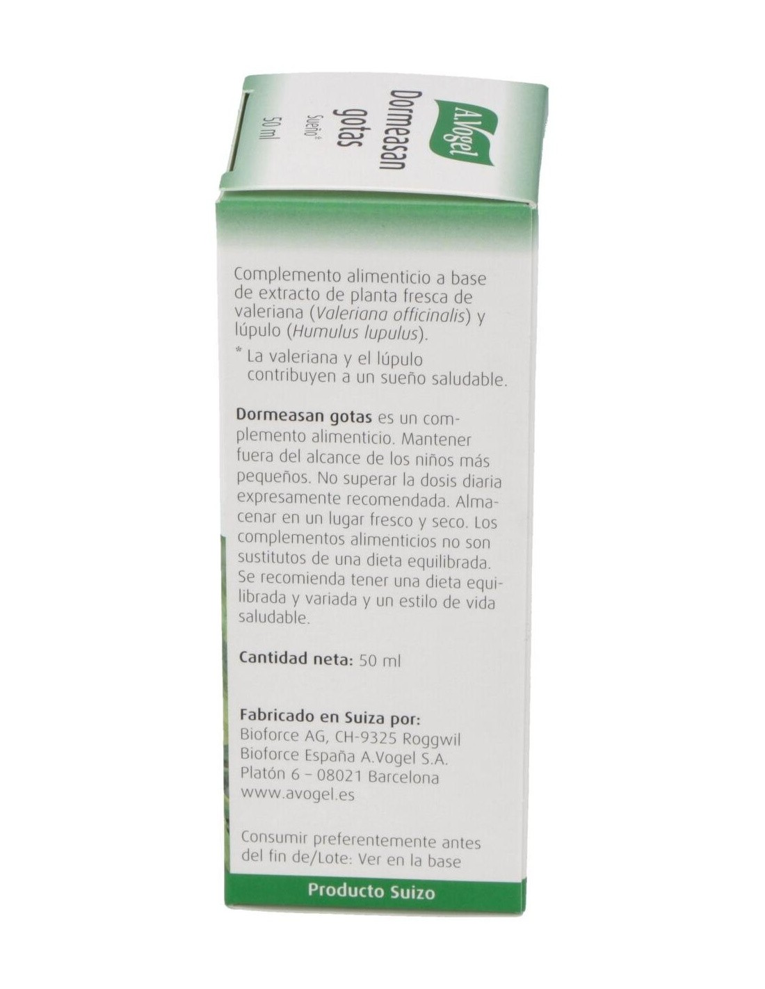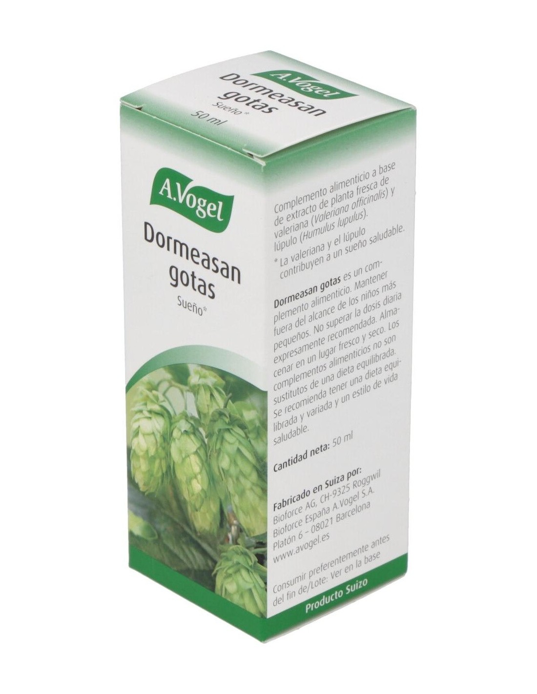 A. Vogel Dormeasan® es un producto a base de raíz fresca de valeriana y estróbilos de lúpulo. Gracias a las ricas propiedades de estas plantas medicinales, Dormeasan®, se convierte en una de las ayudas para conciliar el sueño, y aliviar el estrés y el insomnio.