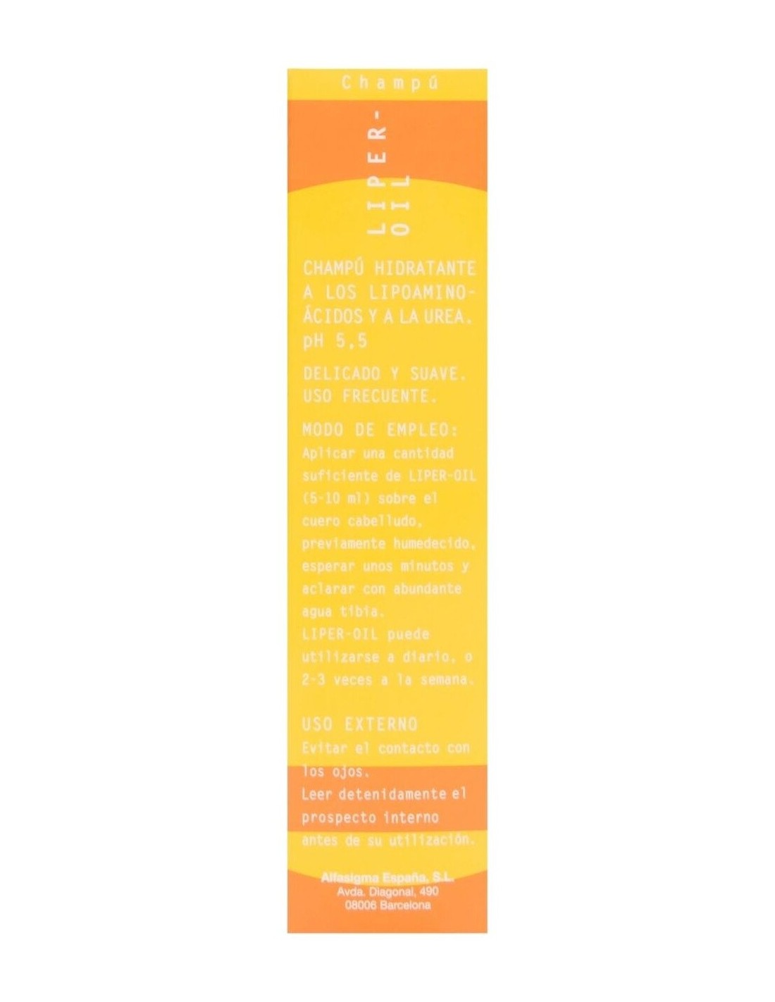 Aplicar una cantidad suficiente de Liper-oil (5-10ml) sobre el cabello húmedo, realizar un ligero masaje sobre el cuero cabelludo, esperar unos minutos y aclara con abundante agua tibia. Liper-oil puede utilizarse a diario o 2-3 veces por semana. En todos los casos seguir el criterio médico. Liper-oil produce poca espuma, al ser un champú sin base tensioactiva, por lo que se recomienda aplicar la cantidad indicada para evitar el desperdicio del mismo.