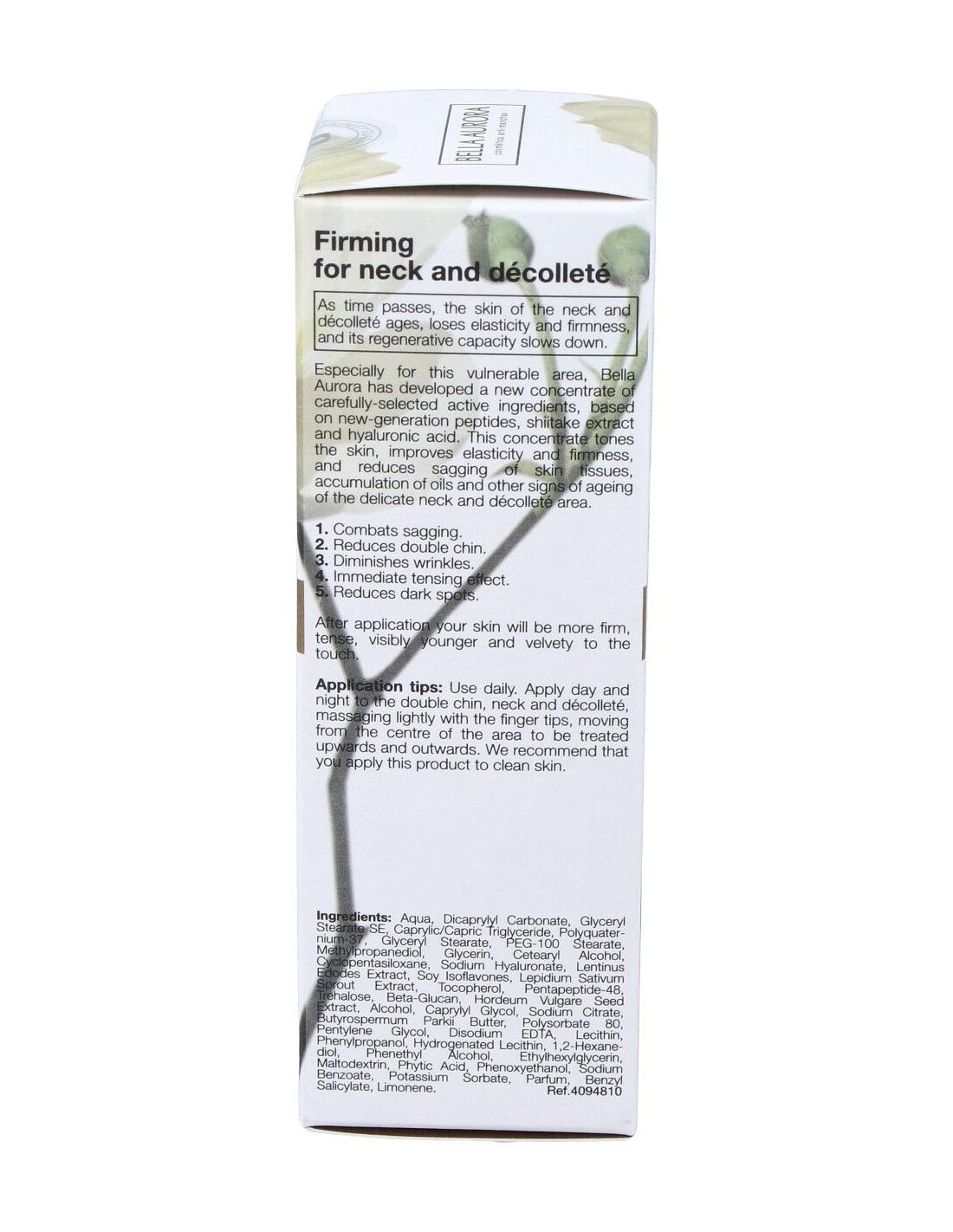Con péptidos de última generación y sales de calcio, combate eficazmente los signos específicos del envejecimiento de esta zona. Reduce la relajación característica de los tejidos del cuello, consiguiéndose una visible reducción de la papada y una piel más tersa y elástica.