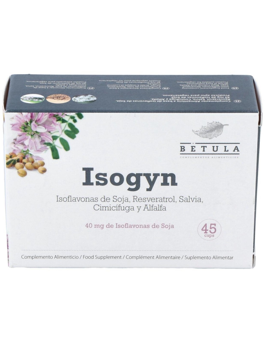 Isogyn está compuesto por Resveratrol, Salvia, Cimicifuga y Alfalfa plantas y productos vegetales con nutrientes muy adecuados para esta etapa vital, que combinan a la perfección con las isoflavonas de soja. Además, su composición natural hace que sea un producto apto para vegetarianos.