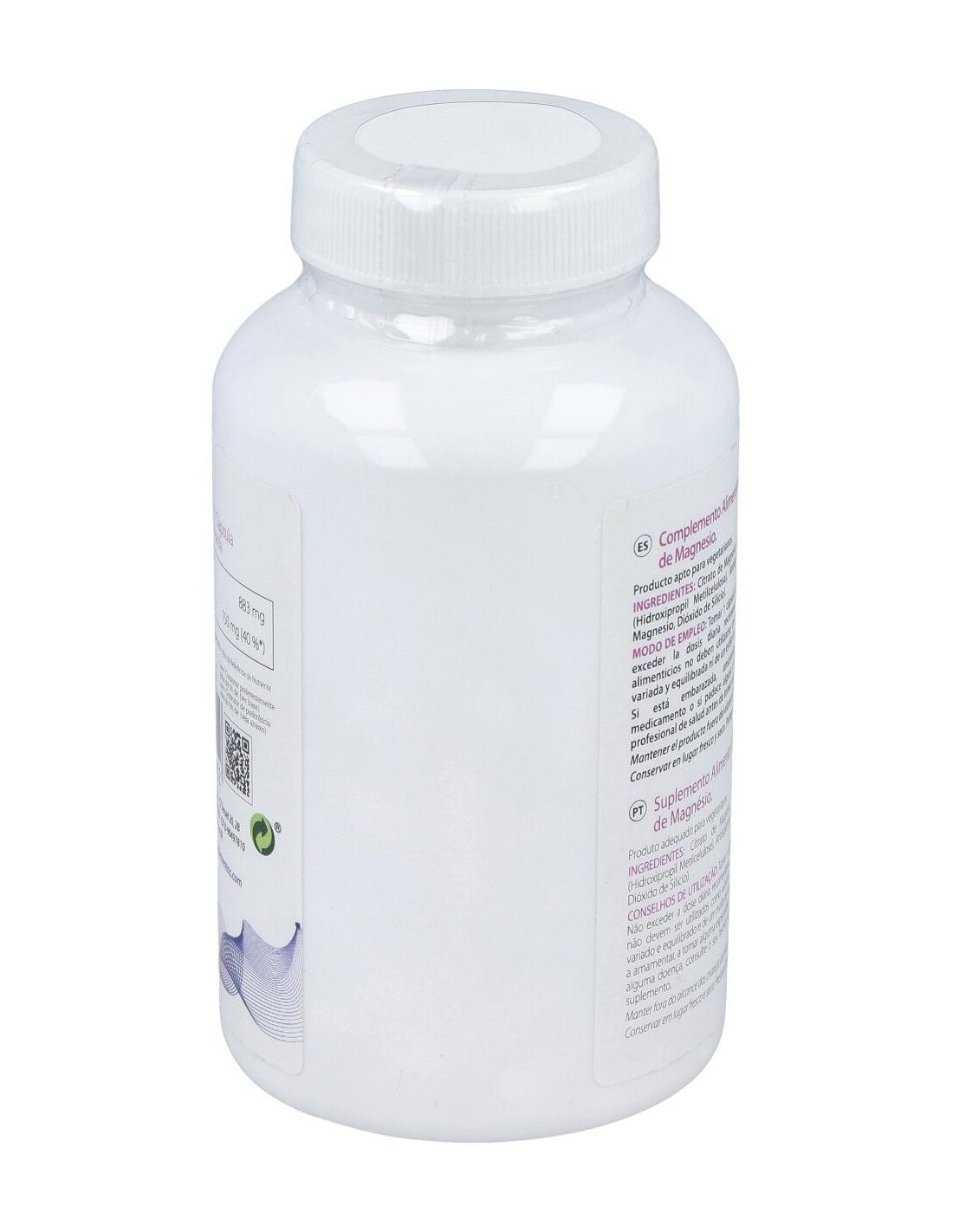 El magnesio es un mineral esencial que participa como cofactor enzimático en una gran cantidad de reacciones fisiológicas necesarias para funciones tan diversas como el metabolismo energético, la función muscular, la actividad del sistema nervioso, el mantenimiento de huesos y dientes o la división celular. Apto para vegetarianos.