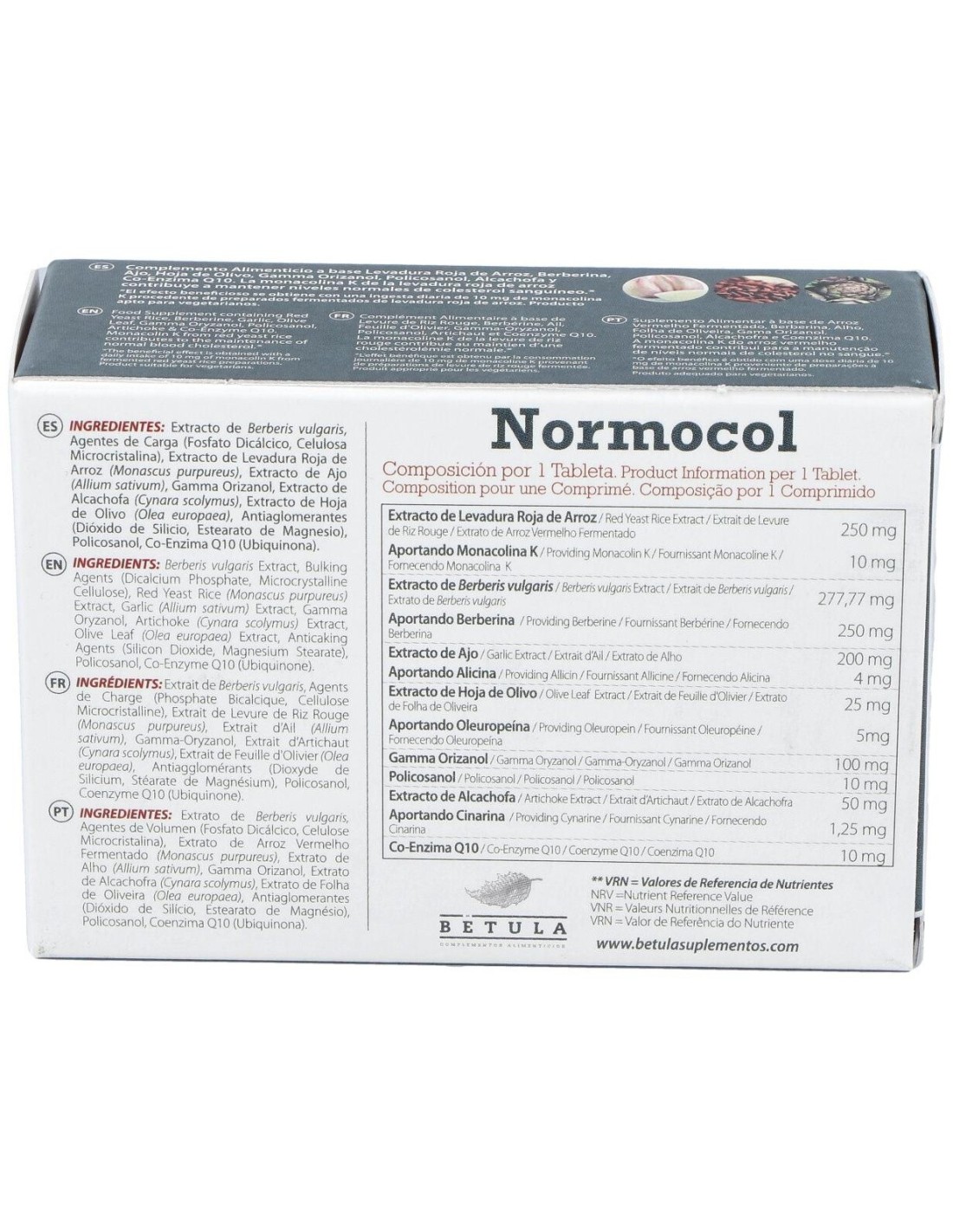 Complemento alimenticio en formato comprimido, elaborado a base de levadura roja de arroz, berberina, alcachofa y coenzima Q10, que contribuye a reducir y mantener los niveles normales de colesterol en sangre. Contiene berberina, que actúa aumentando los receptores LDL en el hígado y disminuyendo la síntesis de triglicéridos.