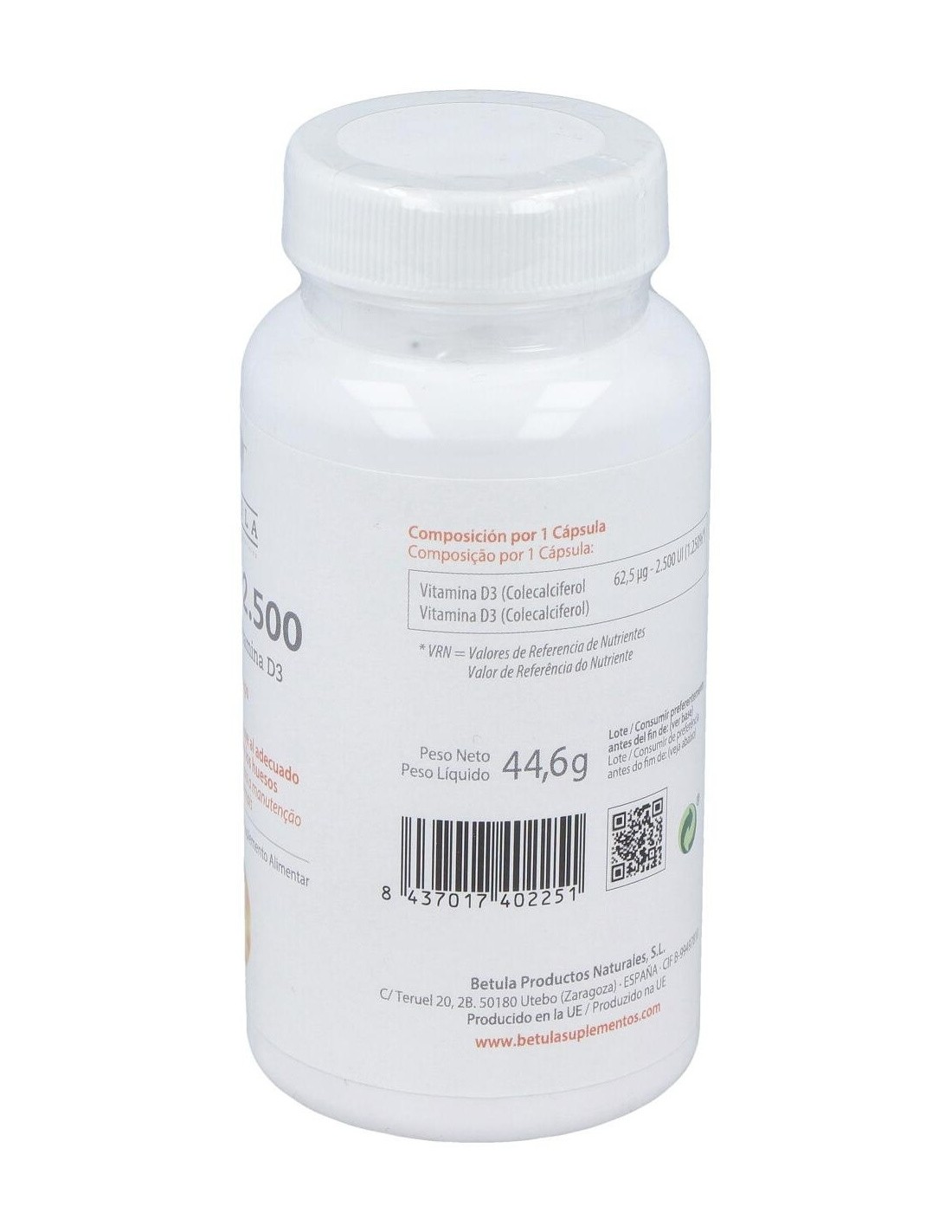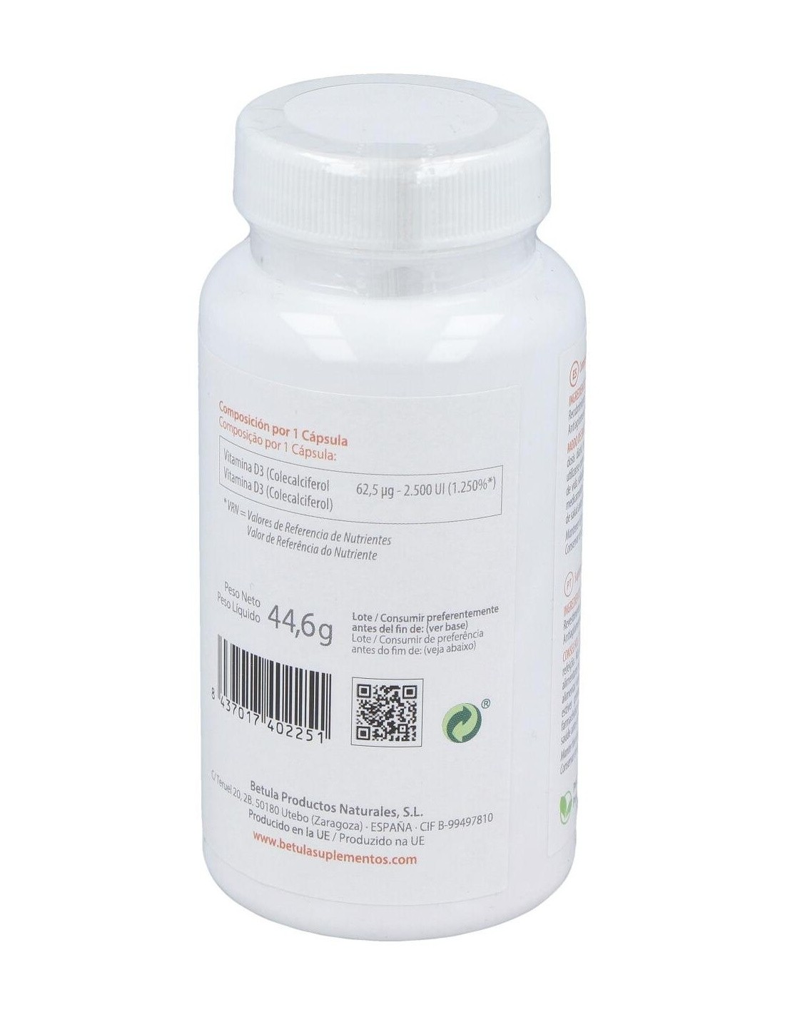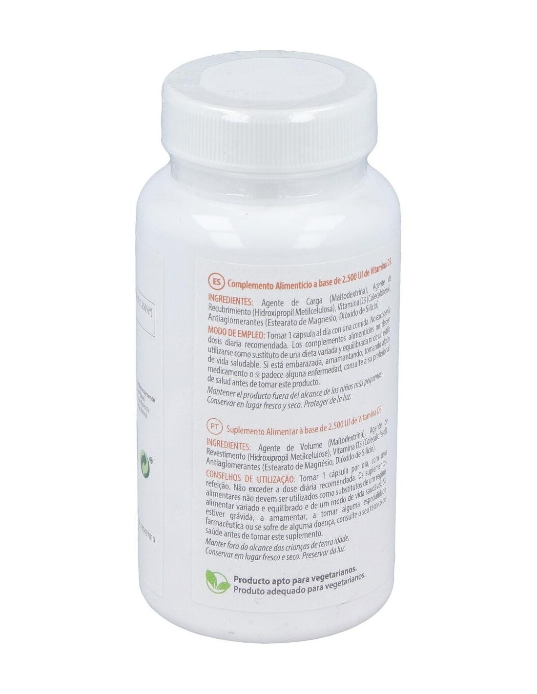 Complemento alimenticio formulado a base de vitamina D en forma de colecalciferol. Cada cápsula contiene 2500 UI de vitamina D3. Favorece el funcionamiento normal del sistema inmune. La vitamina D interviene favorablemente en el manteniiento de los huesos, dientes y piel. Indicado para adultos.