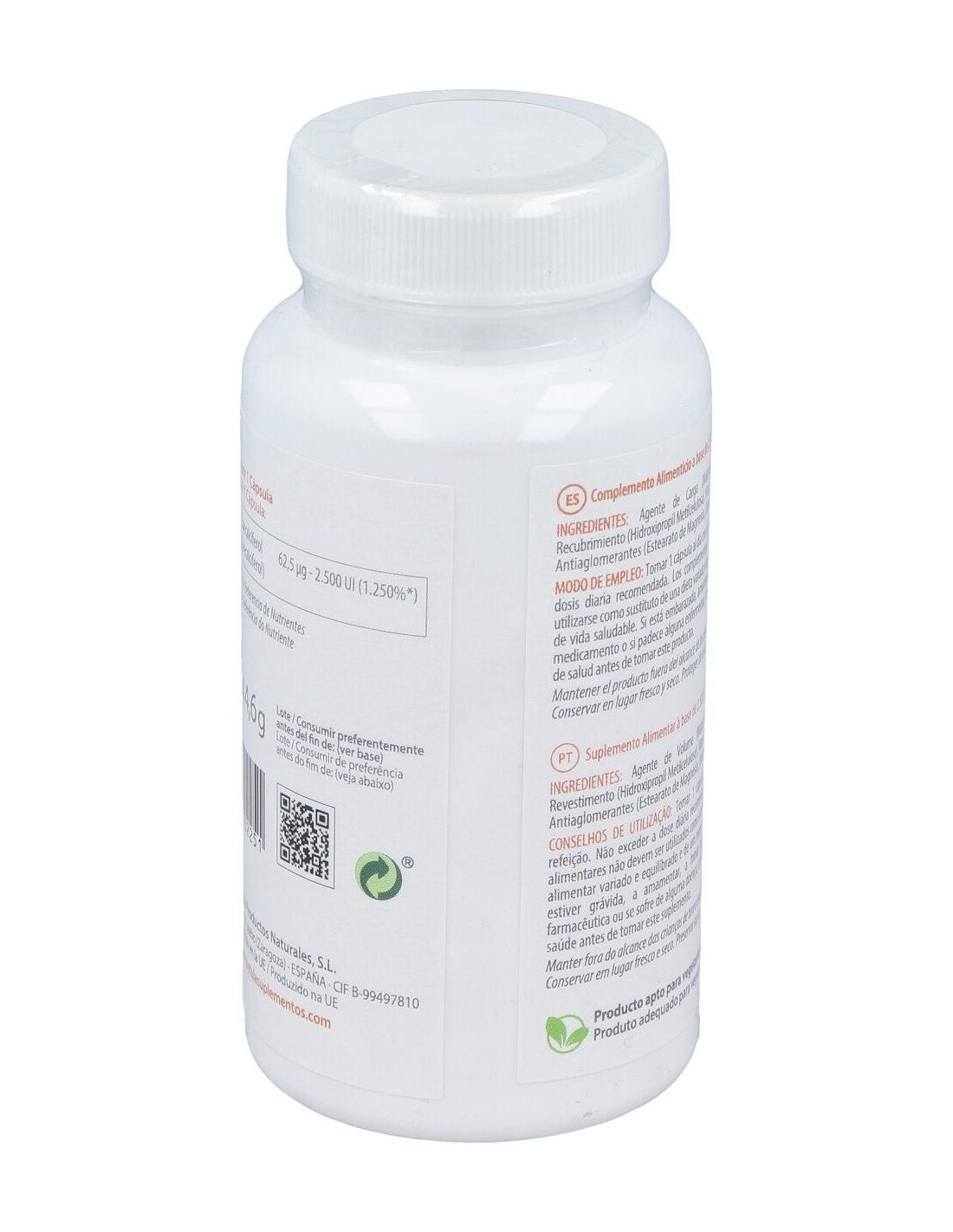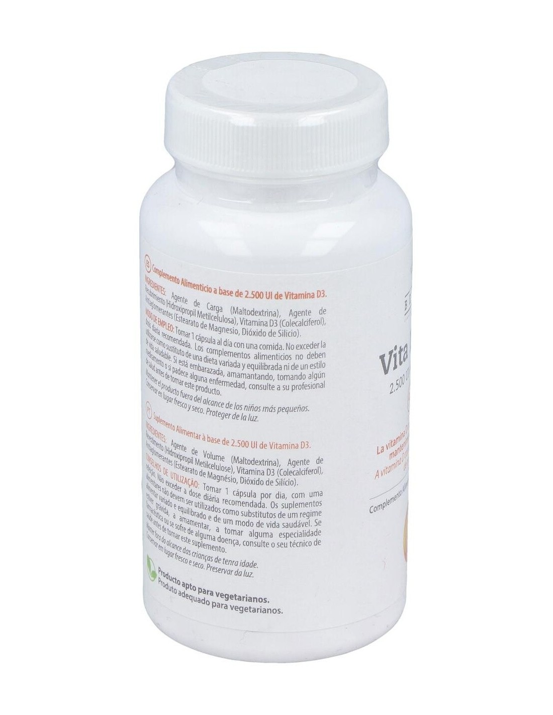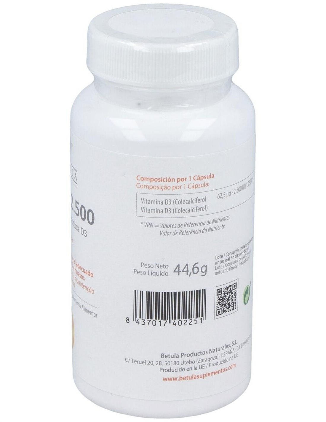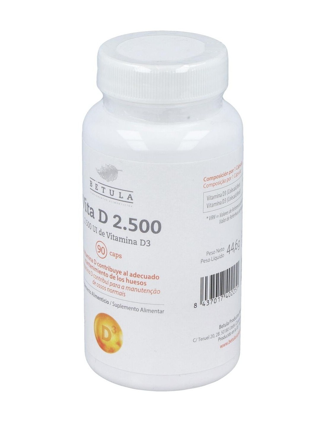 Complemento alimenticio formulado a base de vitamina D en forma de colecalciferol. Cada cápsula contiene 2500 UI de vitamina D3. Favorece el funcionamiento normal del sistema inmune. La vitamina D interviene favorablemente en el manteniiento de los huesos, dientes y piel. Indicado para adultos.
