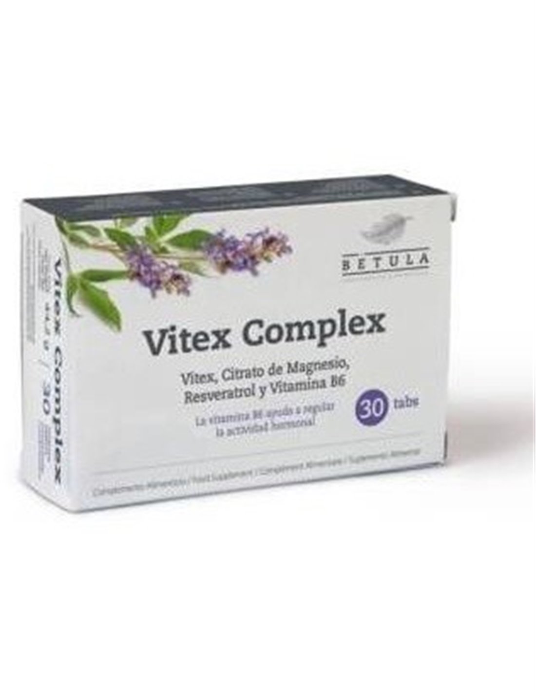 BETULAComplemento alimenticio a base de vitex y otros nutrientes: La vitamina B6 ayuda a regular la actividad hormonal. Con resveratrol, un polifenol muy interesante por las sinergias que establece con el vitex. Con citrato de magnesio, un mineral que contribuye a la función psicológica normal y al normal funcionamiento del sistema nervioso.