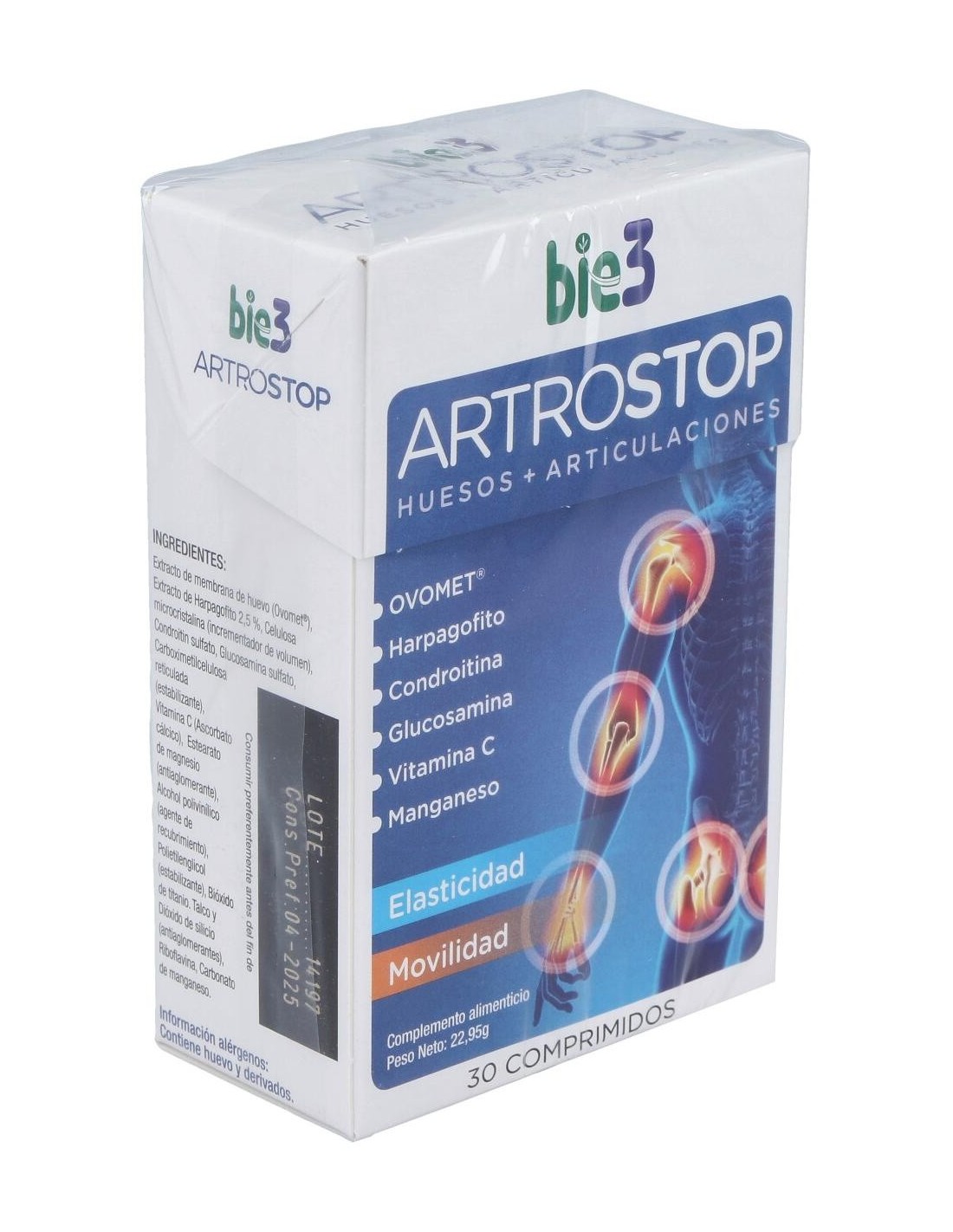 ¿Qué propiedades tiene Bio3 ArtroStop Huesos y Articulaciones 30Comp?