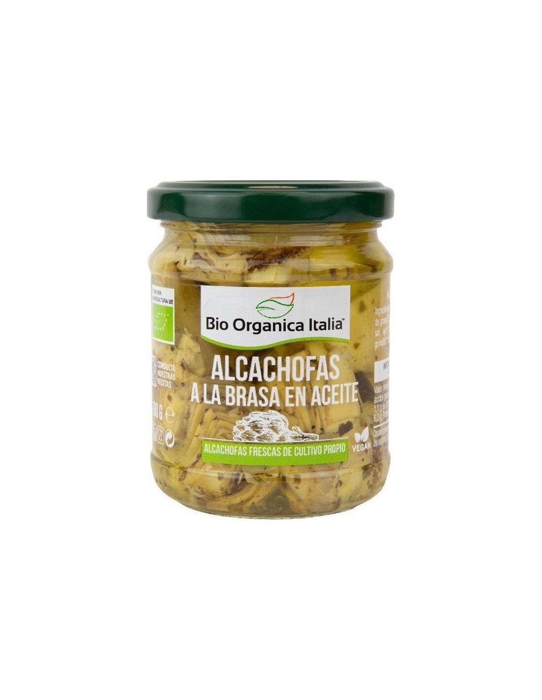 BIO ORGANICA ITALIALa producción de este producto típico de Apulia comienza en septiembre. De hecho, en este mes se inicia el cultivo de la alcachofa en la granja familiar, que continúa con un cuidadoso riego y control hasta que la preciosa 'alcachofa' florece en primavera. Cadena de suministro muy corta: elaborada exclusivamente a mano a partir de un producto 'crudo' y envasada sólo 8 horas después de la recolección, lo que permite saborear el inconfundible sabor del corazón de la alcachofa fresca.