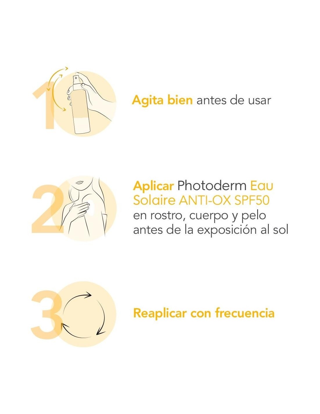 Bioderma Photoderm Eau Solaire ANTI-OX SPF50 Spray 200ml es una agua de protección solar que aporta protección alta SPF50.