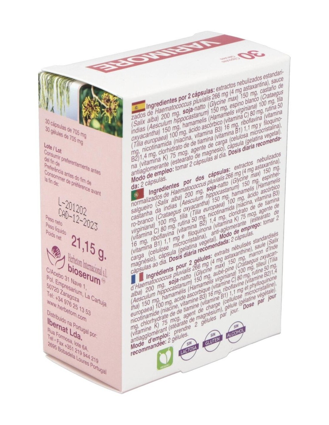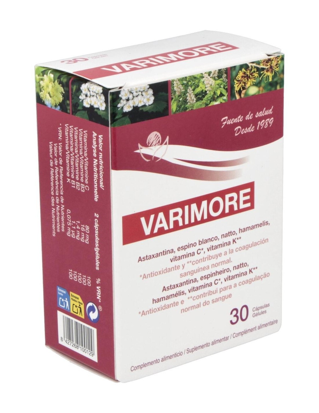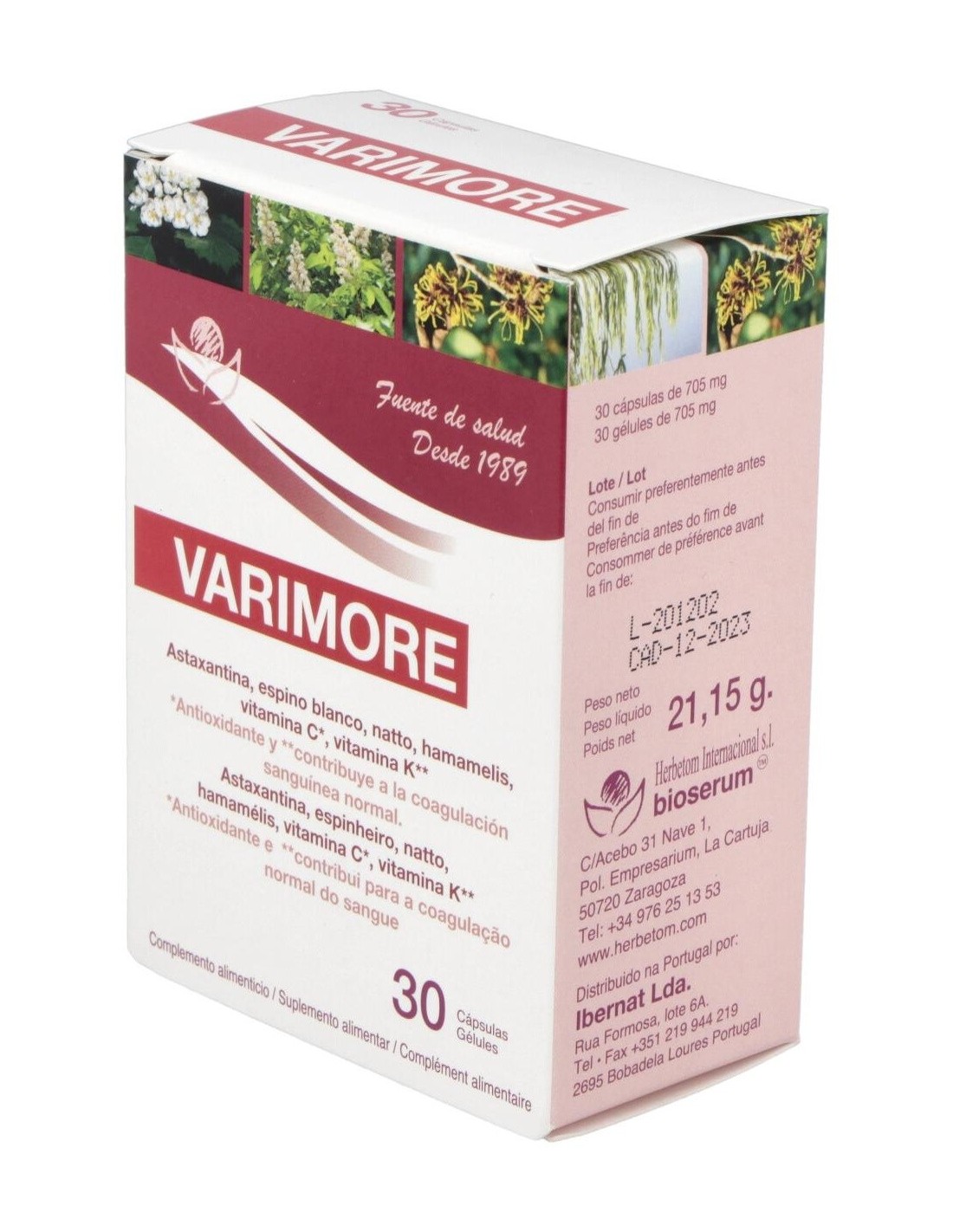Herbetom Varimore 30 cápsulas mejora la circulación sanguínea venosa y arterial, disminuyendo la hipertensión.