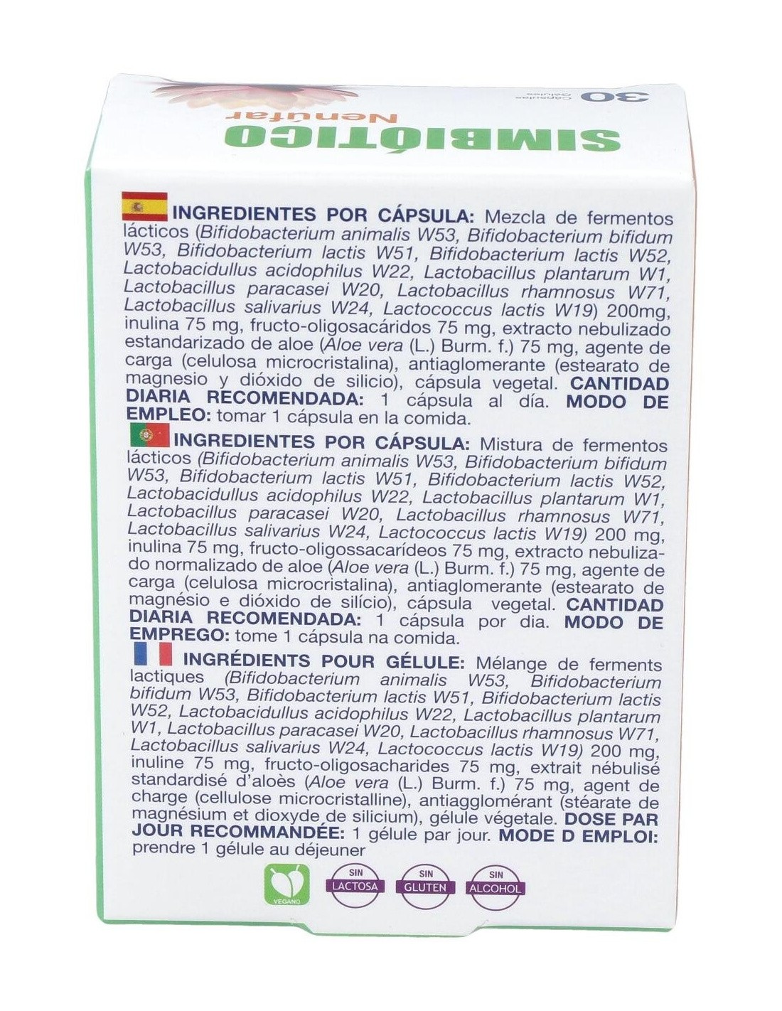 Suplemento que contiene 10 cepas probióticas, prebióticos (inulina y fructooligosacáridos) y aloe vera. Estas cepas están seleccionadas específicamente por su mayor eficacia en el tracto intestinal.