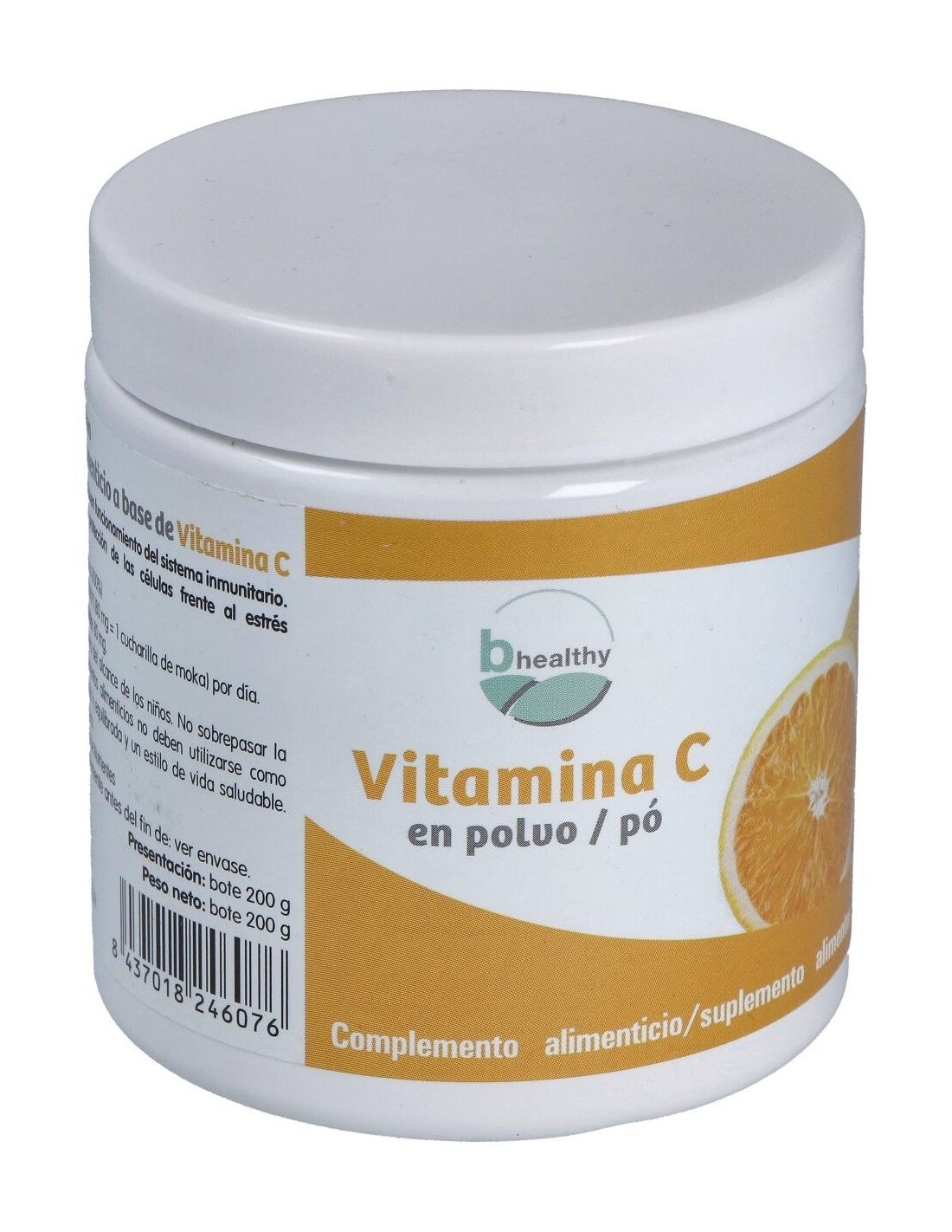 Complemento alimenticio a base de vitamina C (Ácido l-ascórbico) 100%. El producto presenta envase de 200g de contenido neto. El producto facilita la suplementación del organismo con vitamina, la cual contribuye a la formación normal de colágeno para el metabolismo energético normal. Funcionamiento normal de los vasos sanguíneos, huesos, cartílagos, encías, dientes y piel, e inclusive al funcionamiento normal del sistema nervioso y a la función psicológica normal.