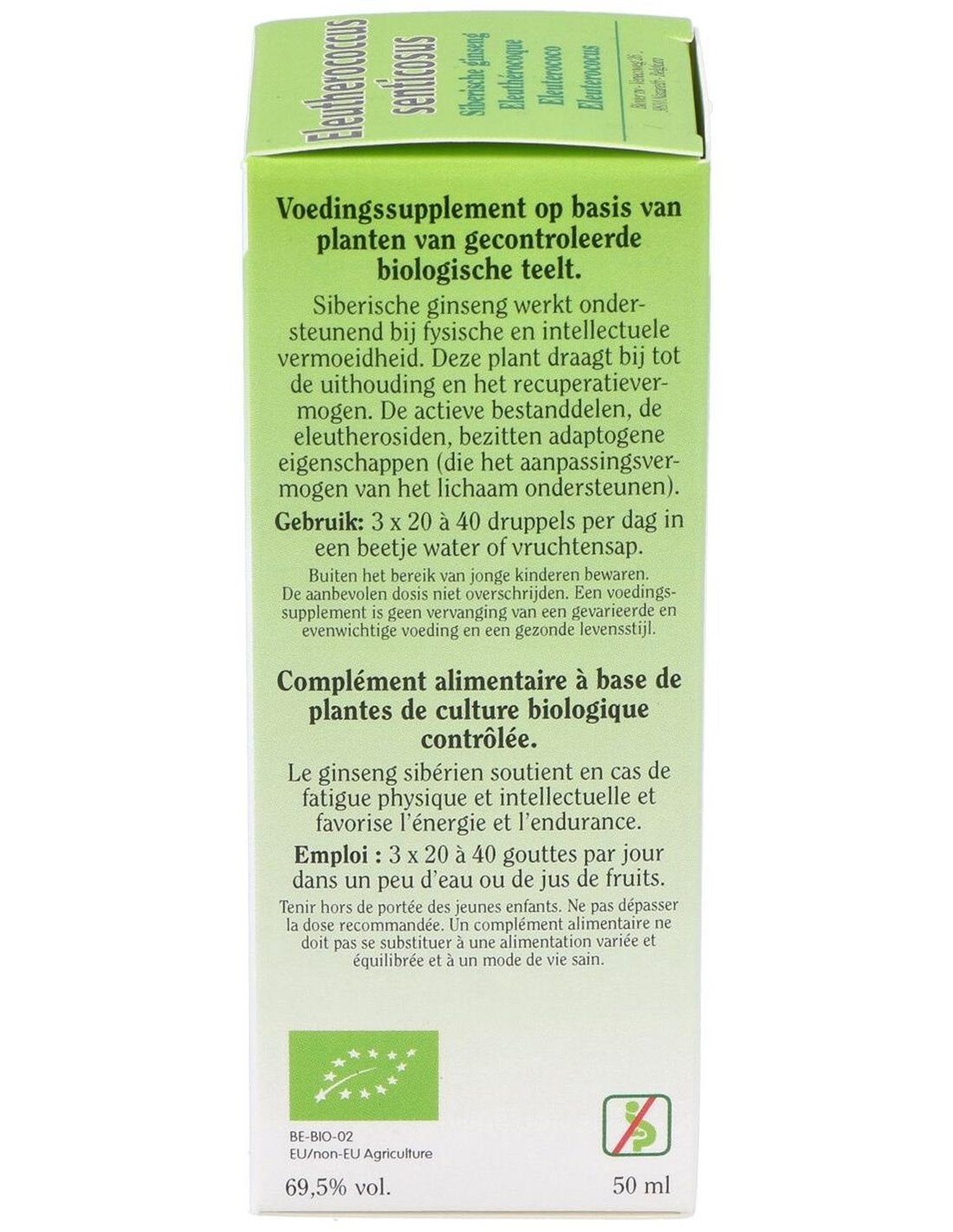 Eleutherococcus senticosus extracto hidroalcohólico 100% (alcohol*, eleuterococo* (raíz), agua).
