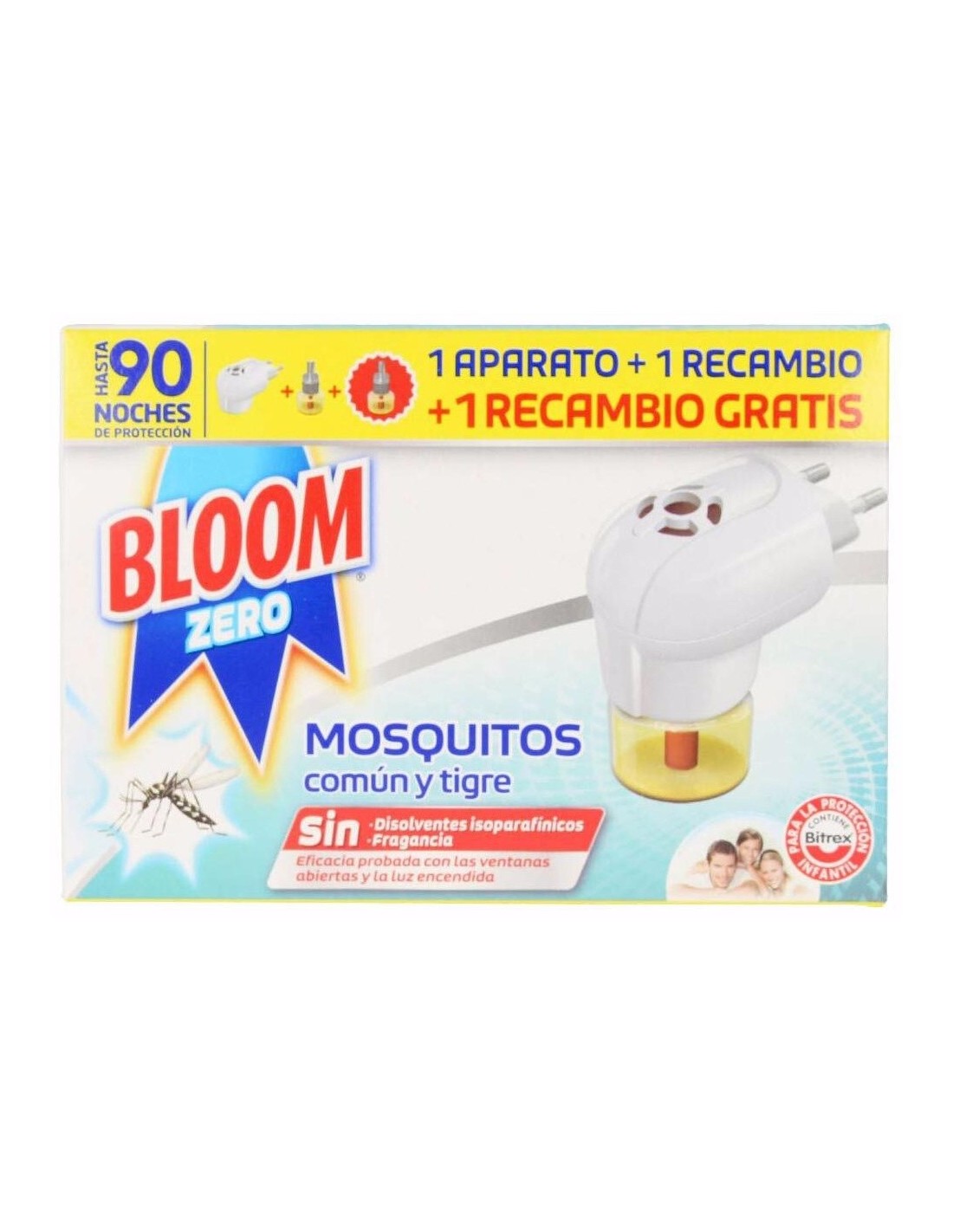 Bloom Zero Eléctrico Líquido Aparato es la solución perfecta contra el mosquito común y tigre porque está desarrollado con 0% fragancia y 0% conservantes, minimizando las molestias asociadas a los insecticidas tradicionales, con el fin de evitar posibles reacciones alérgicas en personas sensibles. Funciona incluso con las luces encendidas.