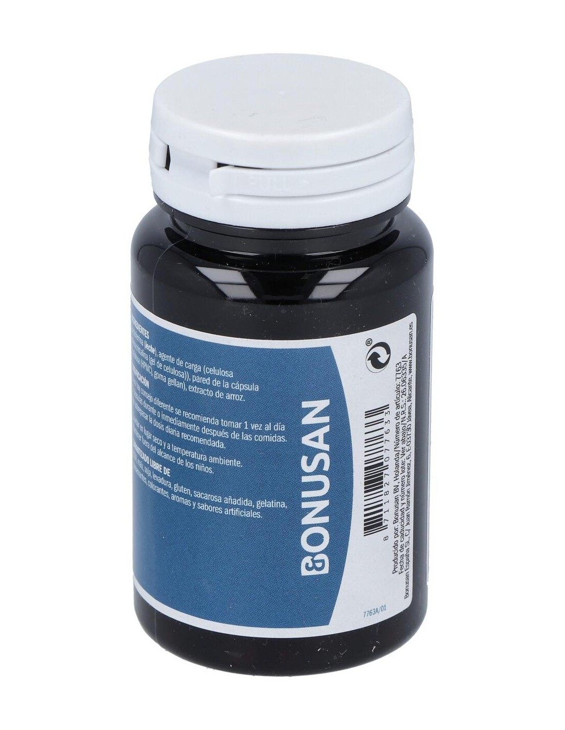 Lactoferrina 150 mg Aditivos: Agente de carga (celulosa microcristalina), celulosa (HPMC), antiaglomerantes (estearato de magnesio).