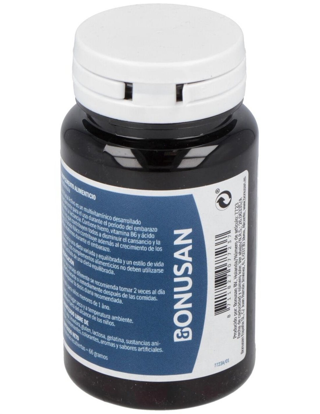 Complemento que ayuda a mujeres embarazadas y madres lactantes aportándoles las vitaminas, minerales y ácido fólico que necesitan para el buen desarrollo del feto. Además de ácido fólico, este complemento contiene vitaminas y minerales como la vitamina B6 y el hierro que apoyan el organismo en caso de cansancio. Gracias al ácido fólico, favorece el desarrollo del sistema nervioso del feto y, también, reduce el cansancio durante el embarazo. Aporta la mayor cantidad posible de vitaminas y minerales en una forma natural y biológicamente absorbible. También contiene vitamina C que está enriquecida con un complejo de bioflavonoides. Este complemento no es apto para niños menores de 1 año y no debe superarse la dosis diaria recomendada. Asimismo, siempre debe primar el consejo médico.