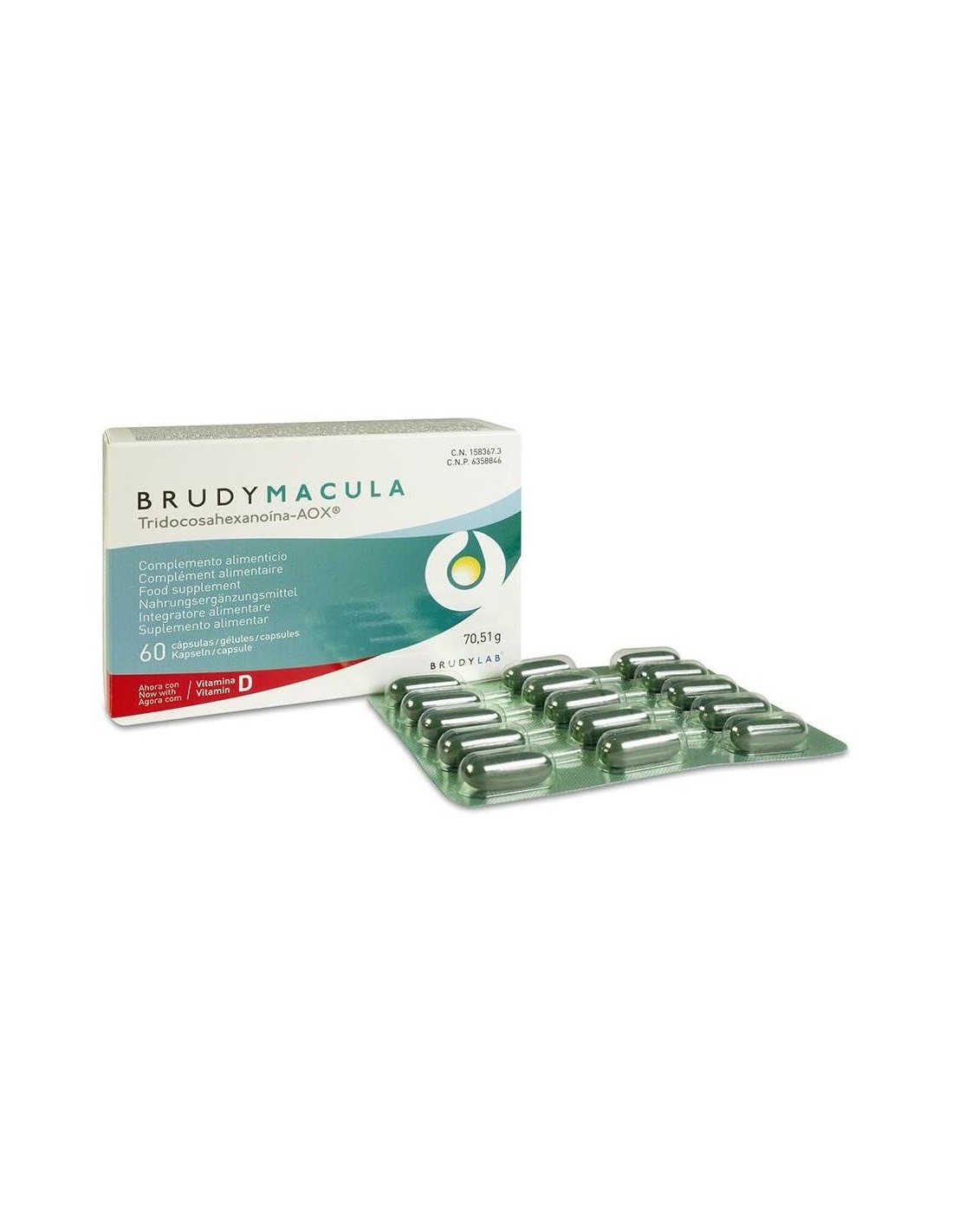 BRUDYLABBRUDYMACULA ha sido ideado para complementar las necesidades diarias de ácidos grasos esenciales de la familia Omega-3 y del grupo incluido de vitaminas, minerales y carotenoides como la luteína y zeaxantina. El ácido Docosahexaenoico (DHA) es un ácido graso poliinsaturado Omega-3 necesario para el normal funcionalismo ocular y cerebral. Este beneficio se obtiene con la ingesta de 250 mg al día de DHA. Los ácidos Eicosapentaenoico (EPA) y DHA contribuyen al funcionamiento normal del corazón. El efecto beneficioso se obtiene con una ingesta diaria de 250 mg de EPA y DHA. La Luteína junto con la Zeaxantina se depositan en la retina y la mácula donde actúan a modo de filtro biológico para la luz. El Zinc contribuye al mantenimiento de la visión normal. Las Vitaminas C y E, y los minerales como el Zinc y el Cobre contribuyen a la protección de las células frente al daño oxidativo. Producto sin gluten ni lácteos.