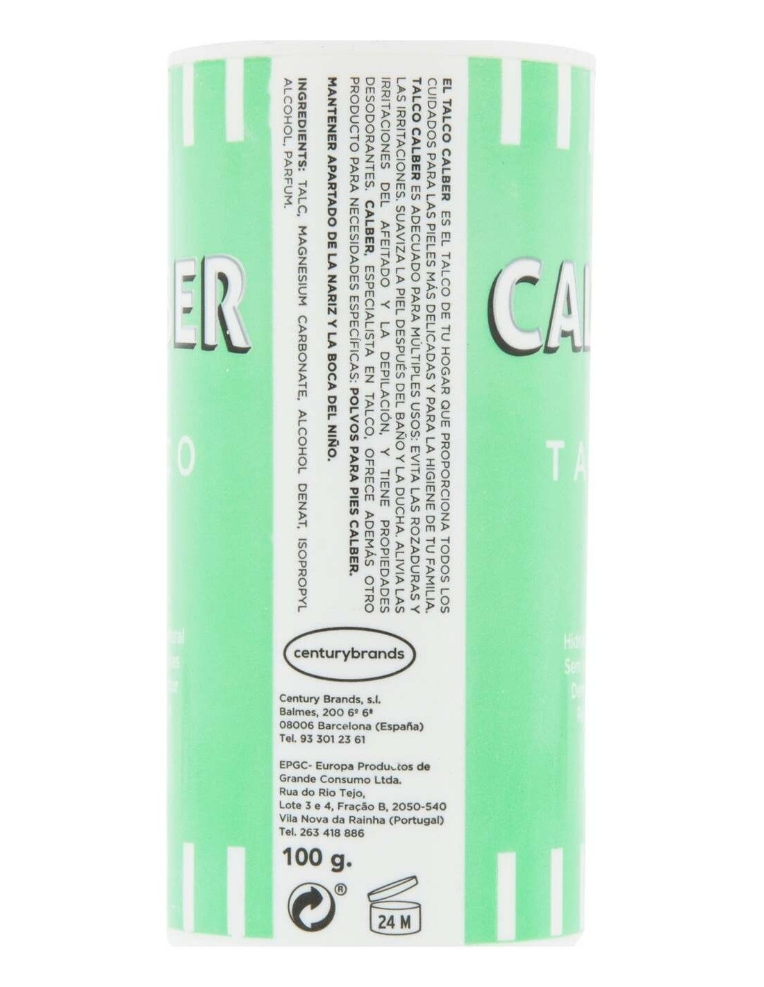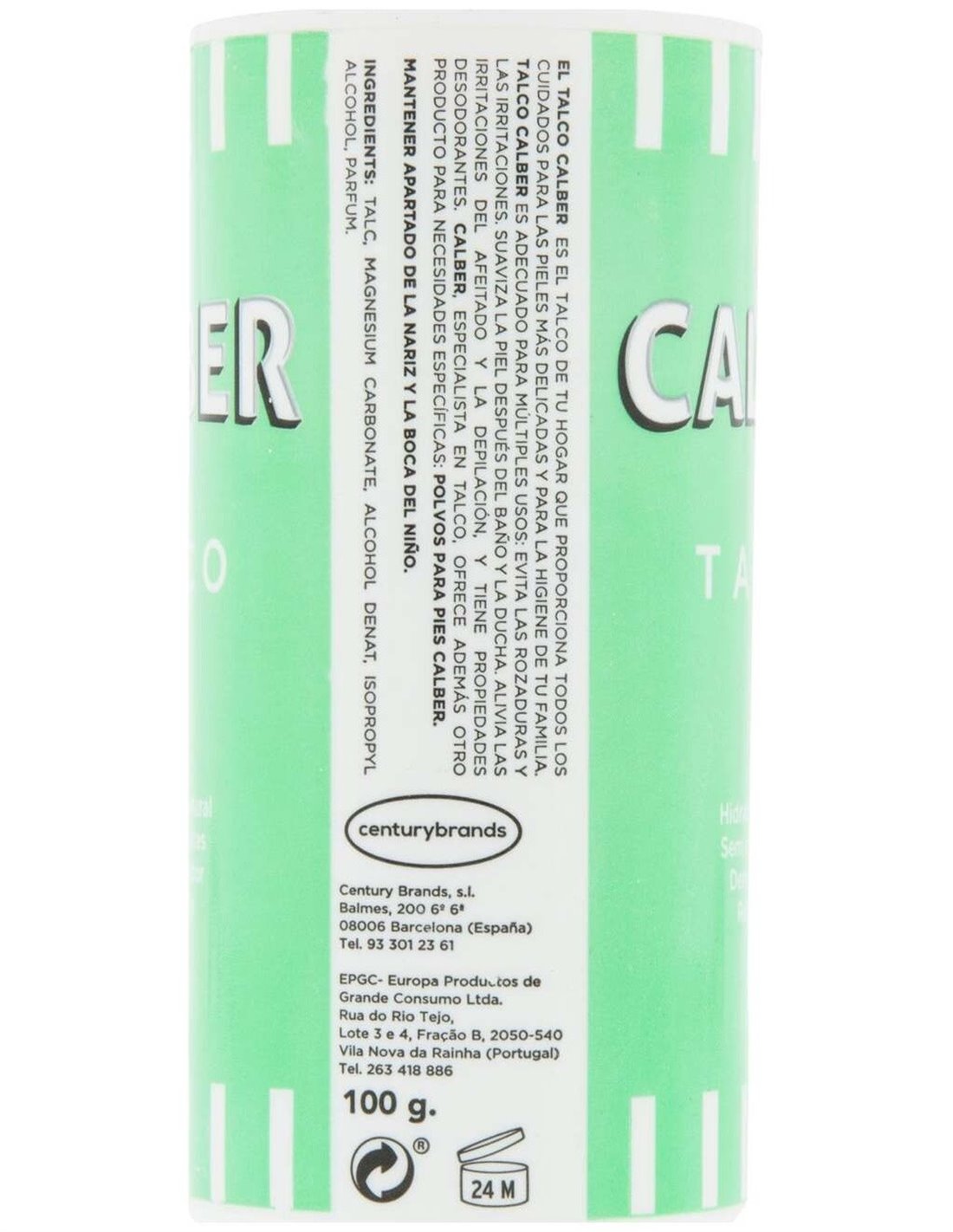 Los polvos de talco de Calber ayudarán a evitar rozaduras o irritaciones en la piel por culpa del roce continuo o el sudor. Indicado, sobre todo, para pieles sensibles o reactivas en zonas como muslos o axilas. Además, tiene propiedades desodorantes por lo que ayuda a combatir los malos olores. También puede usarse para aliviar las irritaciones tras el afeitado o la depilación. Con una fragancia muy agradable.