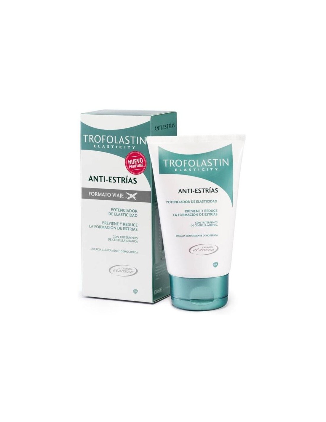 Trofolastín® antiestrías 100ml es una crema antiestrías que ayuda a prevenir su aparición. Su fórmula contiene extracto de centella asiática, que repara la piel y la reafirma; hidrolizado de colágeno e hidrolizado de elastina, que otorgan elasticidad a la piel y contribuyen a su relleno; y aceite de semilla de trigo, que actúa como un emoliente y regenerador cutáneo ante las estrías, además de ser un potente antioxidante.