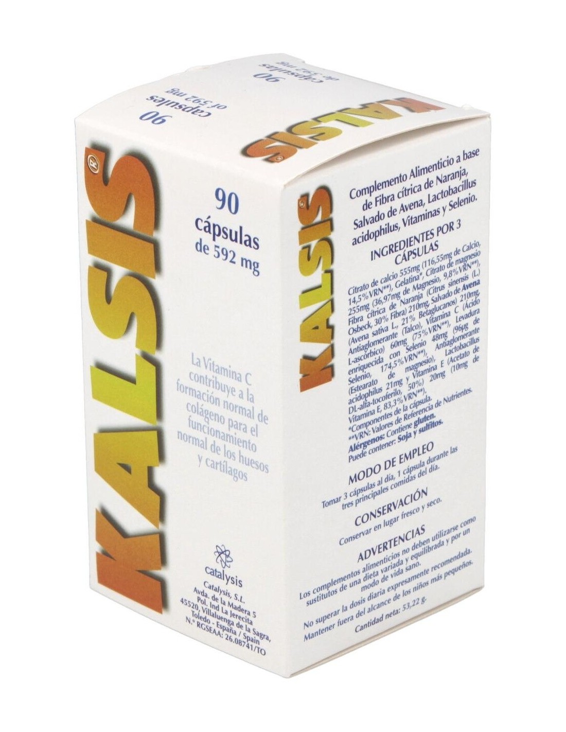 Gluconato cálcico, Gluconato magnésico, Naranja (Citrus sinensis (L.) Osbeck), Avena (Avena sativa L.), Lactobacillus Acidophilus, Vitamina C (L-Ascorbato de sodio), Levadura de selenio, Vitamina E (D-alfa-tocoferol) y Envoltura (Gelatina).