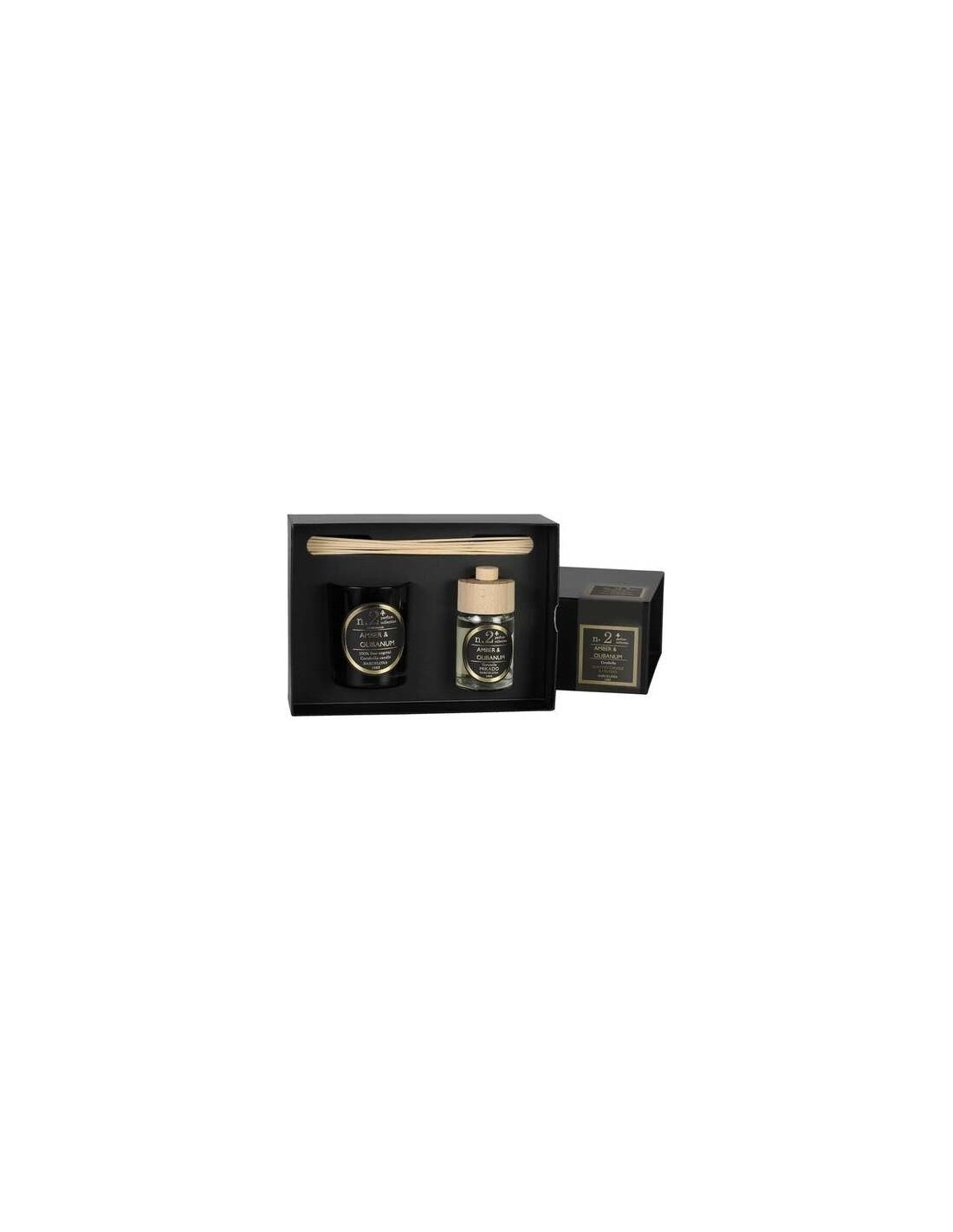 Cofre regalo que incluye difusor de varillas y vela perfumada de la colección Numbers. Presentado en una elegante caja de color negro satinado.