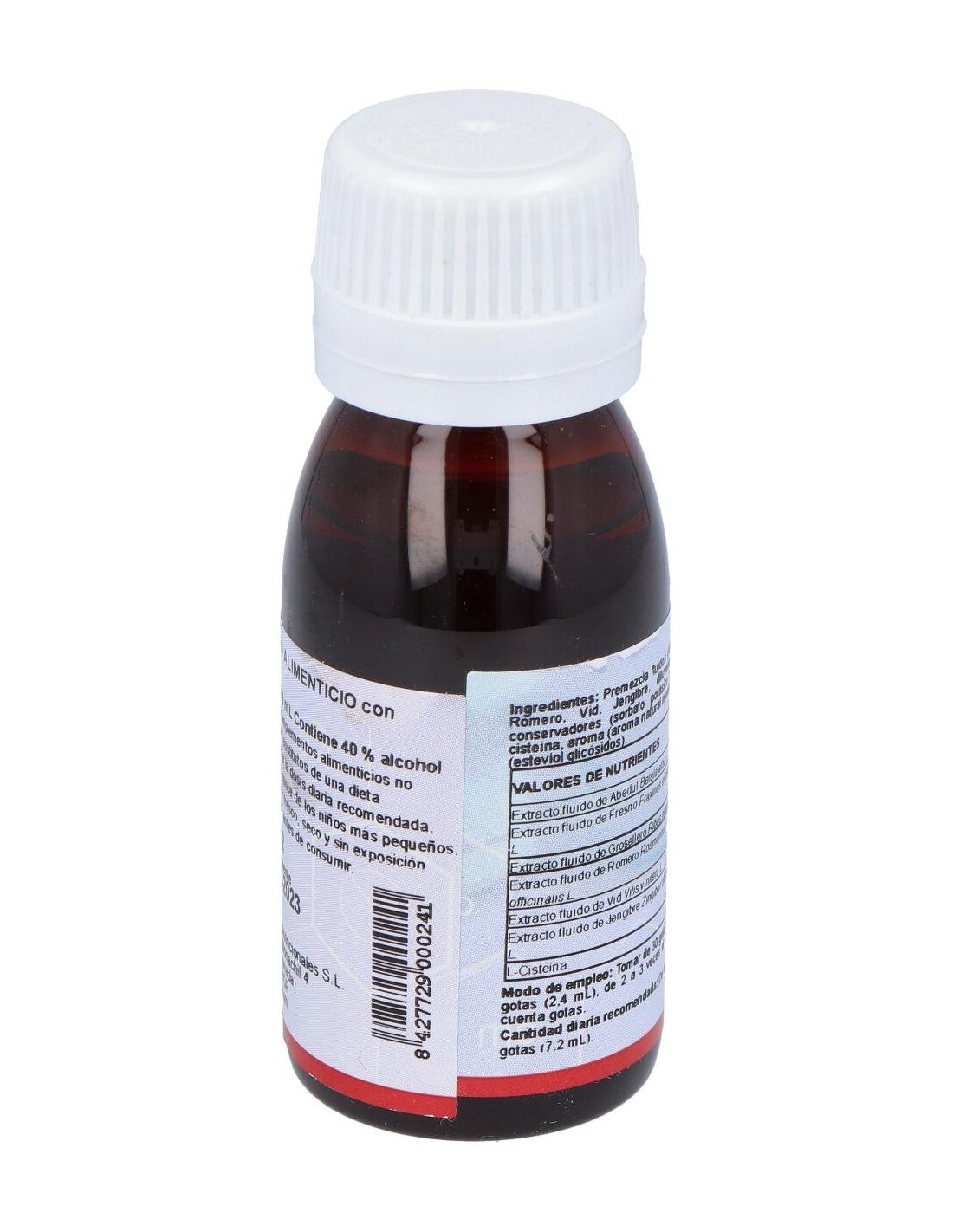 Por 1.4 ml: L-Cisteína (23 mg), Extracto fluido de fresno (0.11 ml), Extracto fluido de vid (0.11 ml), Extracto fluido de abedul (0.11 ml), Extracto fluido de Romero (0.11 ml), Extracto fluido de jengibre (0.11 ml), Extracto fluido de Grosellero (0.11 ml), Extracto vegetal hidroalcohólico de abedul.