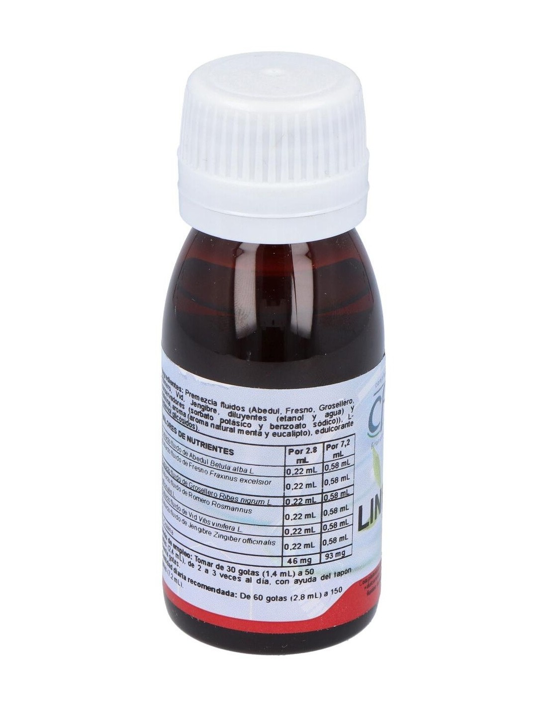 Complemento alimenticio con edulcorante líquido a base de extractos fluidos de plantas indicado en casos de retención de líquidos y edemas. Ayuda a tratar el incremento de la diuresis, la insuficiencia venosa y la insuficiencia venolinfática. Se utiliza también como tratamiento complementario de los linfedemas de miembro superior y como coadyuvante antibacteriano y antiinflamatorio.