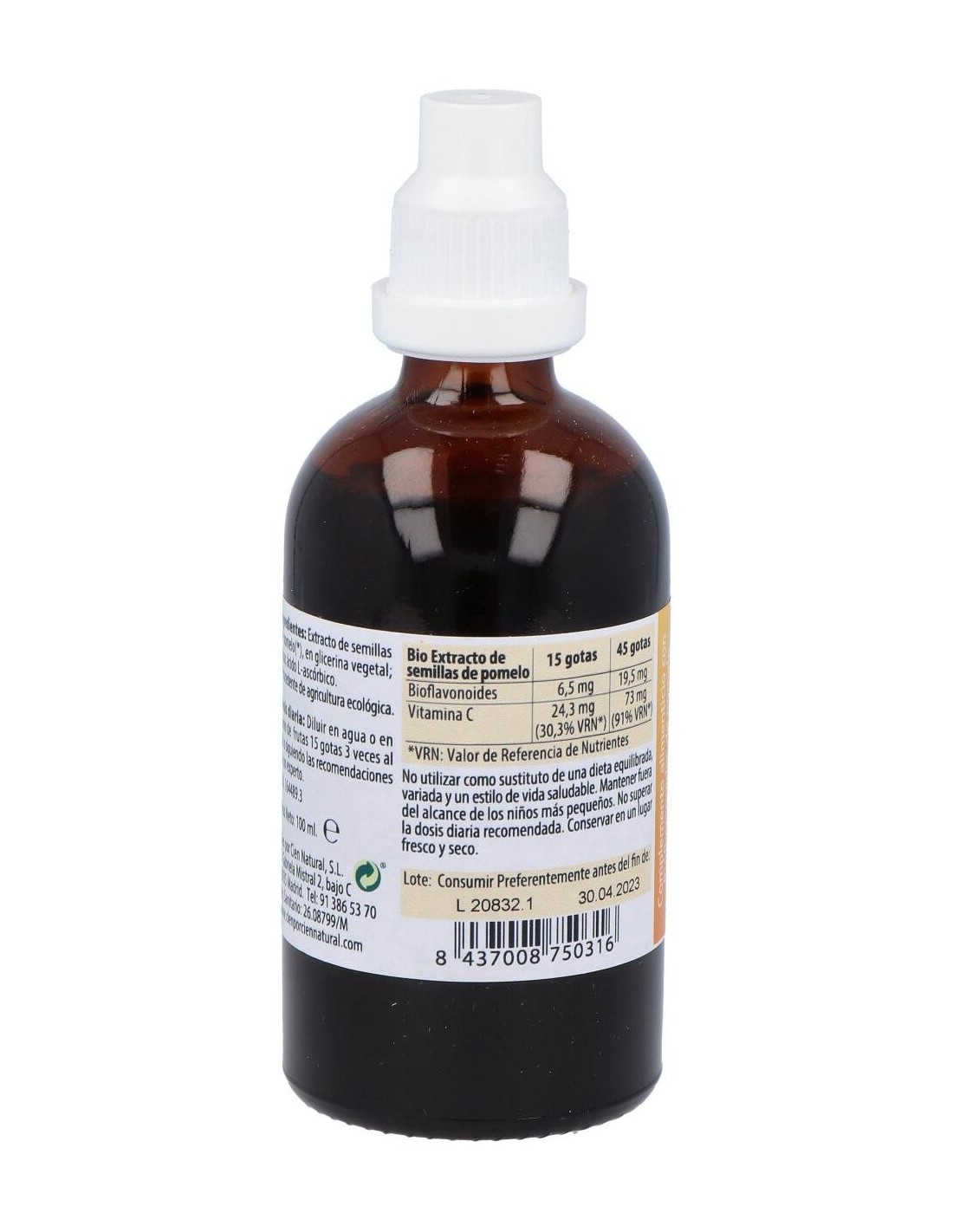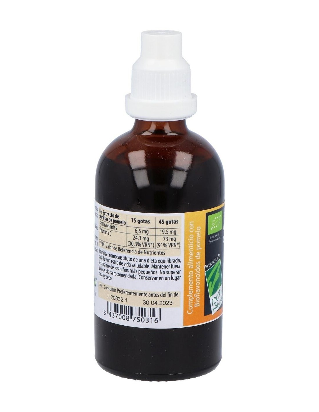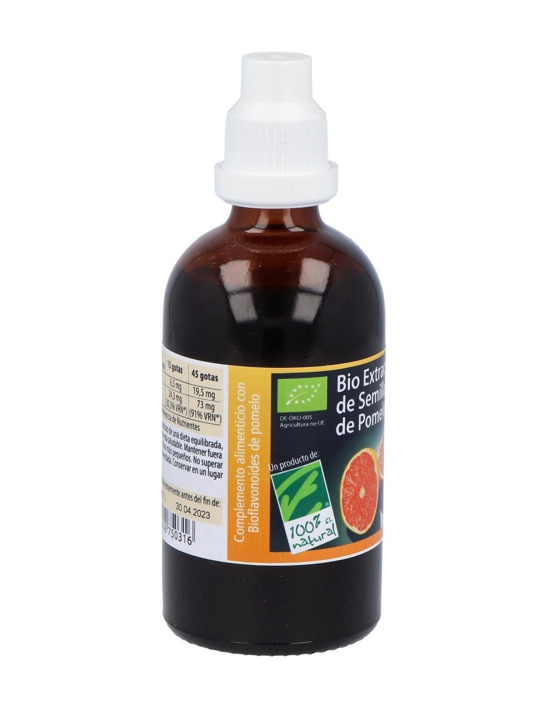 100% Natural Bio Extracto de Semillas de Pomelo Ecológico es un complemento alimenticio que se consigue de la extracción de los principios activos beneficiosos que contienen las semillas del pomelo, principalmente bioflavonoides y vitamina C.
