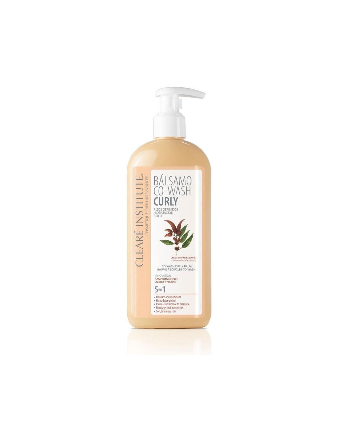 CLEARE INSTITUTEEl bálsamo Co-Wash Curly de Clearé Institute®, limpia, acondiciona y ayuda a desenredar el cabello aportando un extra de brillo. Proporciona forma y volumen al cabello aumentando su resistencia a la rotura. El amaranto de su composición reconstruye la estructura interna del cabello aportando volumen y brillo. Reduce la fricción entre las cutículas evitando el encrespamiento y favoreciendo al movimiento natural del cabello.