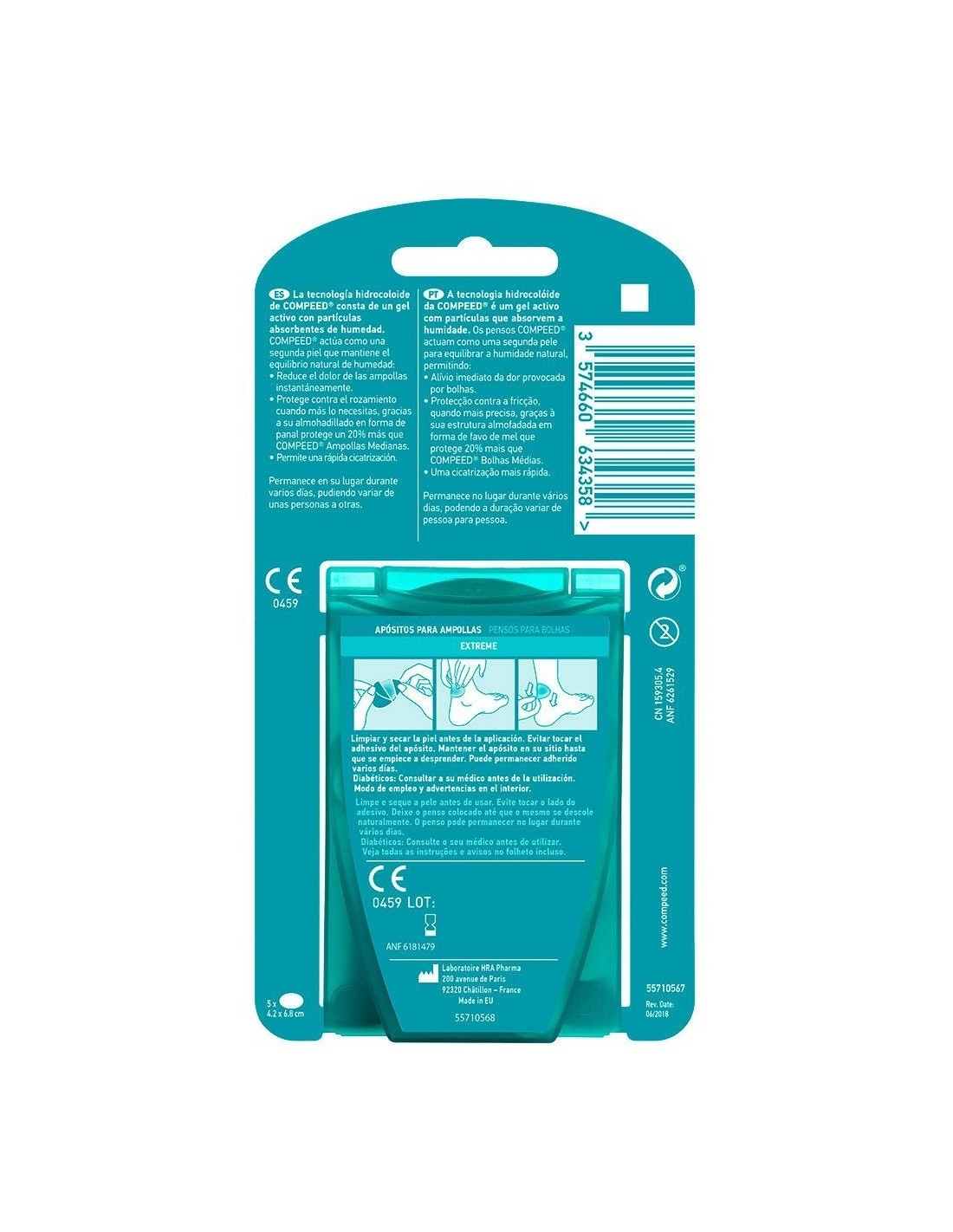 Su avanzada tecnología hidrocoloide actúa como una segunda piel formando un gel protector que alivia el dolor al instante y evita la fricción, a la vez que crea un entorno óptimo para favorecer el proceso de curación. Aporta un 20 % más de almohadillado protegiendo frente a la fricción gracias a su estructura en nido de abeja.