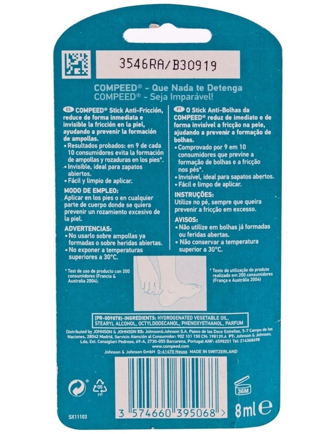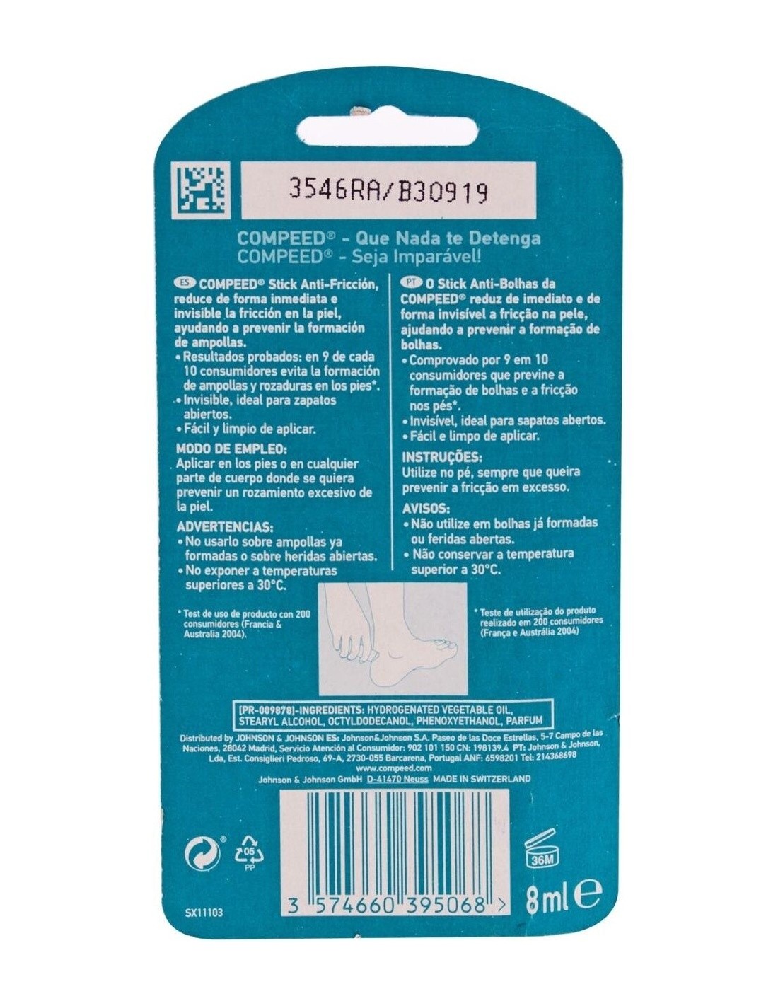 Compeed® Stick Anti-fricción 8ml es un stick antifricción de fácil aplicación. Ayuda a frenar la aparición de rozaduras, calma el dolor en los pies y contribuye a prevenir que sigan creciendo las ampollas.