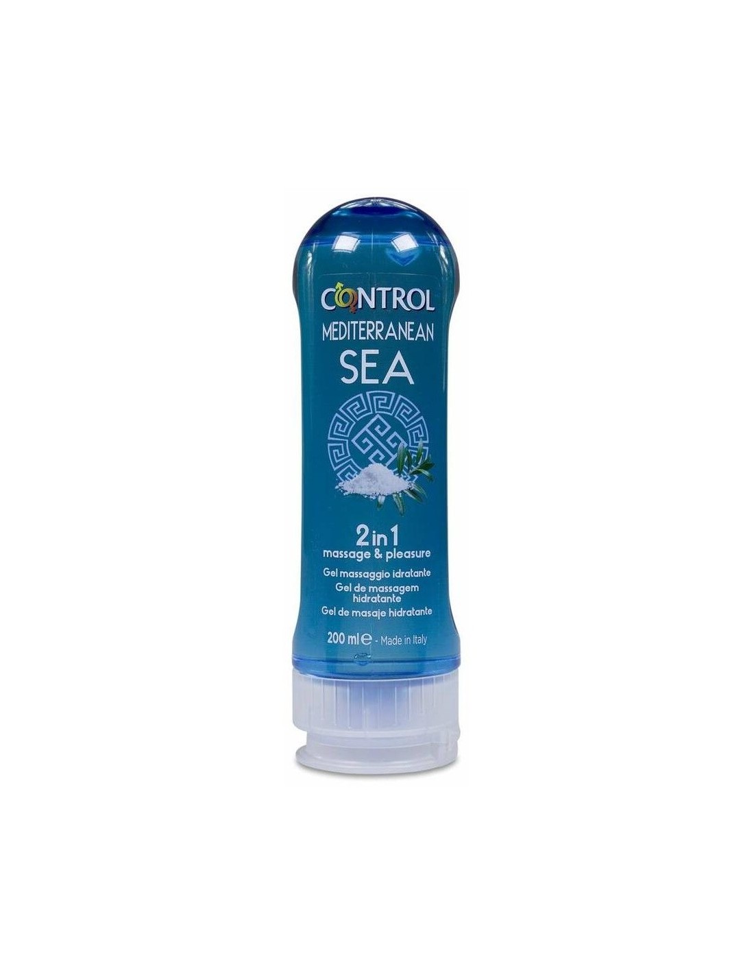 Control Mediterranean Sea Massage 200mles un gel dos en uno perfecto para los momentos más íntimos. Puede ser utilizado como lubricante y como gel masajeador. Su aroma mediterráneo creará un ambiente relajante.