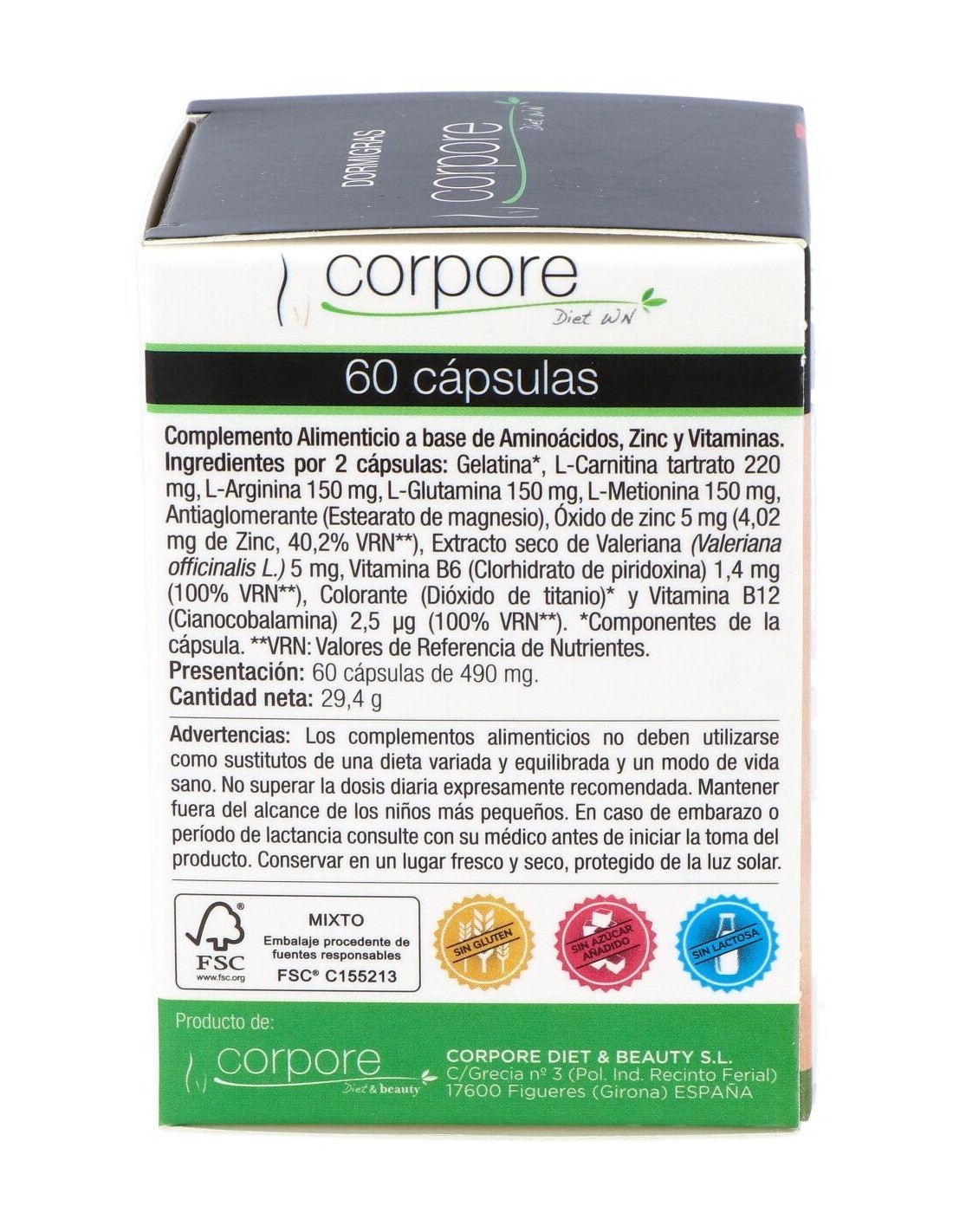 L-CARNITINA. L-ARGININA. L-GLUTAMINA. L-MELATONINA. VALERIANA. VITAMINA B6. VITAMINA B12. ÓXIDO DE ZINC. ESTEARATO DE MAGNESIO. GELATINA.