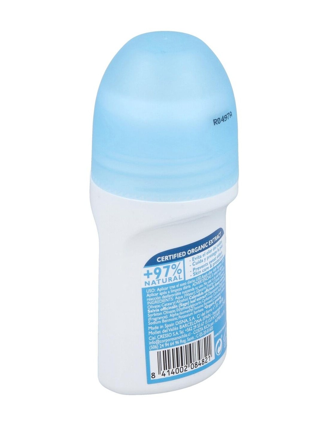 Desodorante Roll-On que ayuda a controlar la sudoración y eliminar el mal olor. Contiene una fórmula basada en un 97% de ingredientes de origen natural y aceites esenciales. Es eficaz y de alta tolerancia dérmica. Los aceites previenen e inhiben la proliferación de las bacterias que causan el mal olor. Cuida, protege la piel y evita las irritaciones. Apto para veganos. Indicado para todo tipo de pieles.