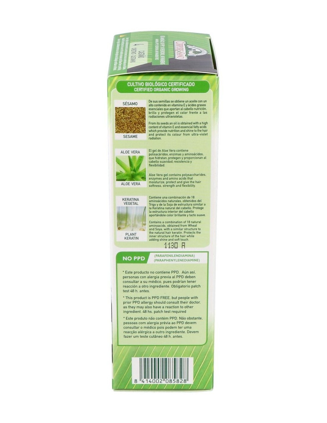 Coloración permanente enriquecida con aceite de Sésamo de cultivo Biológico certificado, extracto de Girasol y Keratina vegetal, que proporcionan al cabello una coloración permanente con un color intenso, luminoso y duradero. Proporciona una coloración duradera y protección del cabello.