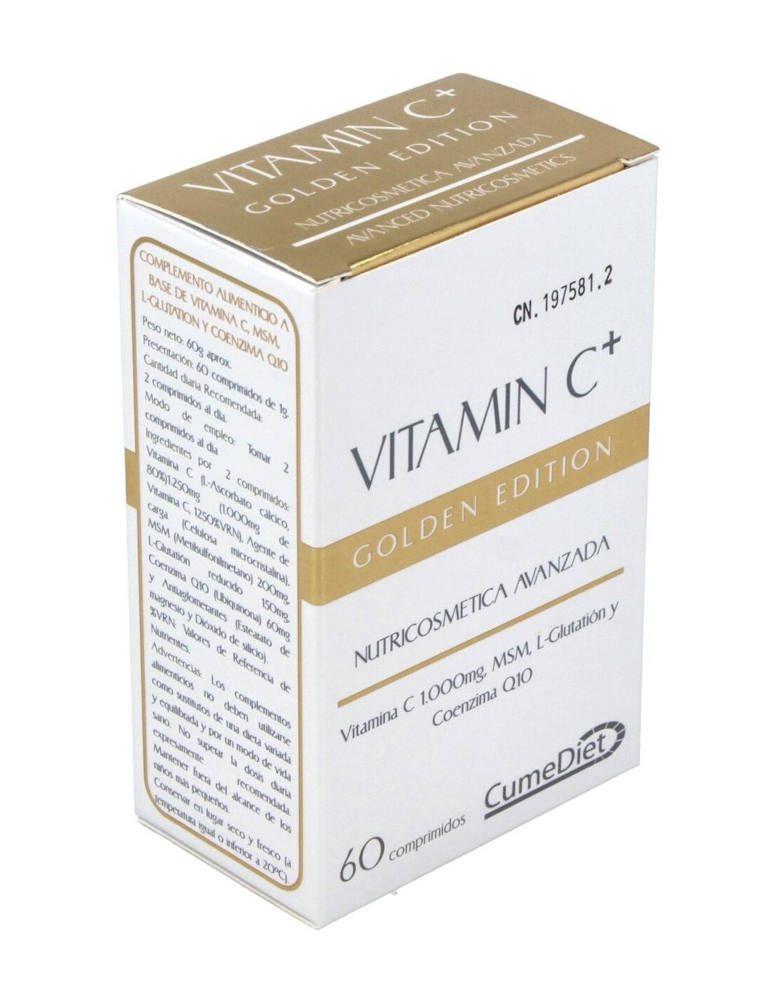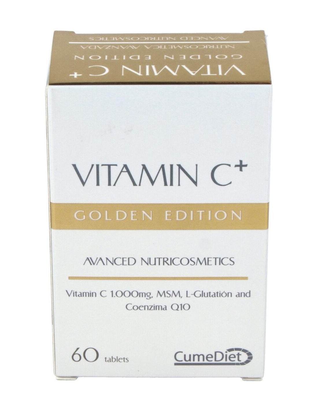 Cumediet Vitamina C+ Golden 60comp comprimidos antioxidantes a base de vitamina c, l glutatión y coenzima q 10. ayuda a prevenir los daños en la piel y a atacar los elementos nocivos.
