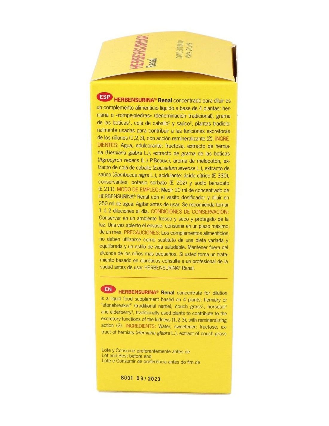 Herbensurina concentrado para diluir es un complemento alimenticio con una cuidada mezcla de plantas que ayudan al bienestar de las vías urinarias y reducen el riesgo de contraer cálculos renales. Los componentes de Herbensurina son: