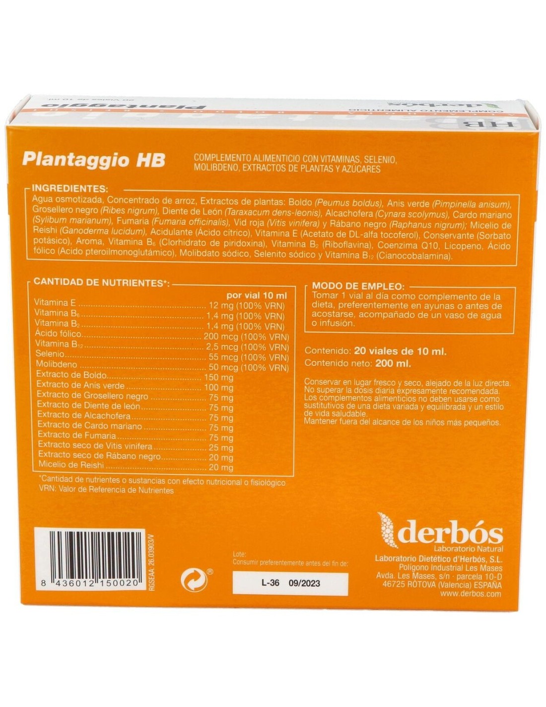 Derbos plantaggio hb es un complemento alimenticio especialmente formulado para favorecer el funcionamiento hepático. Preparado a base de plantas y nutrientes específicos favorece la función hepatico-biliar y ofrece al hígado una protección.