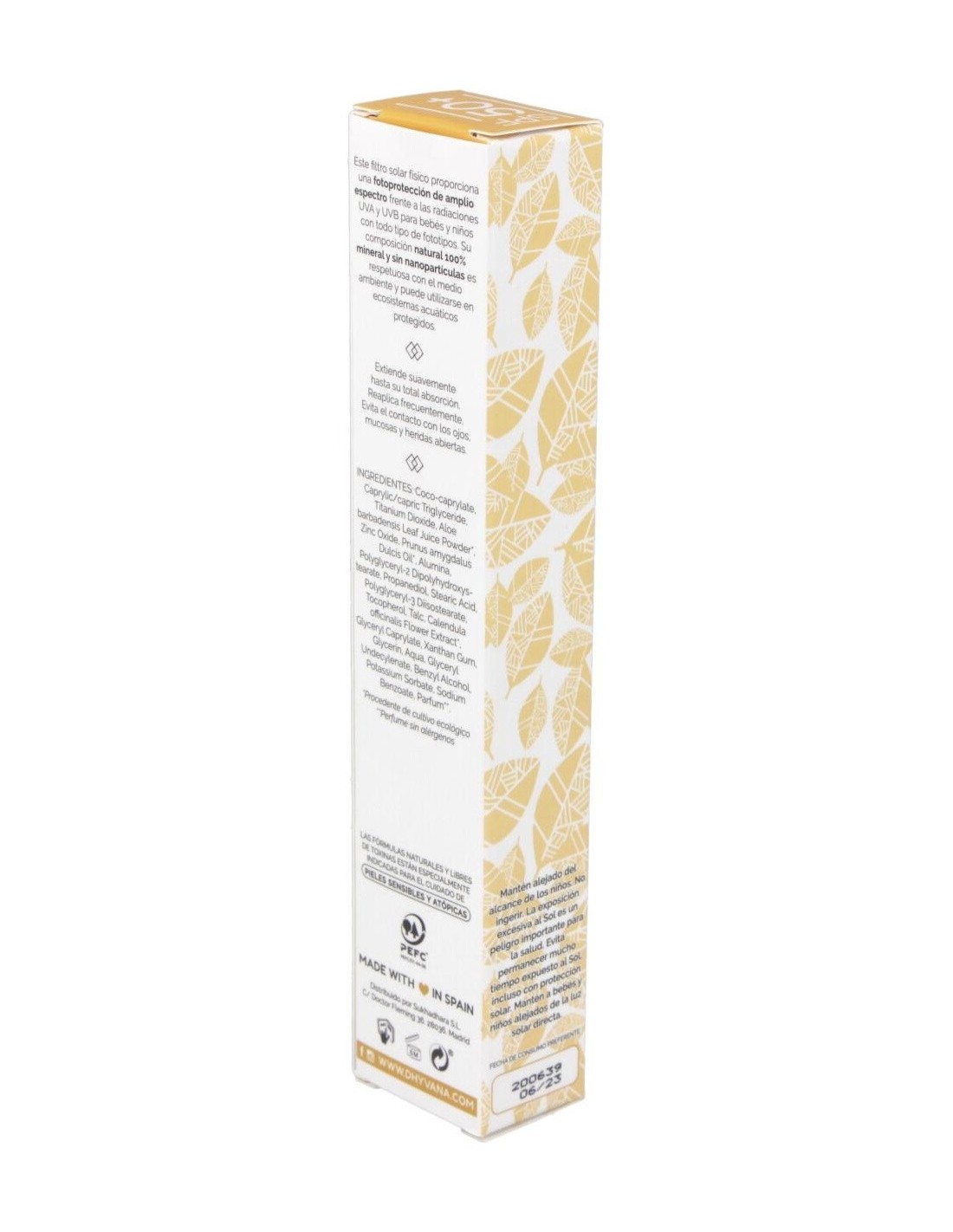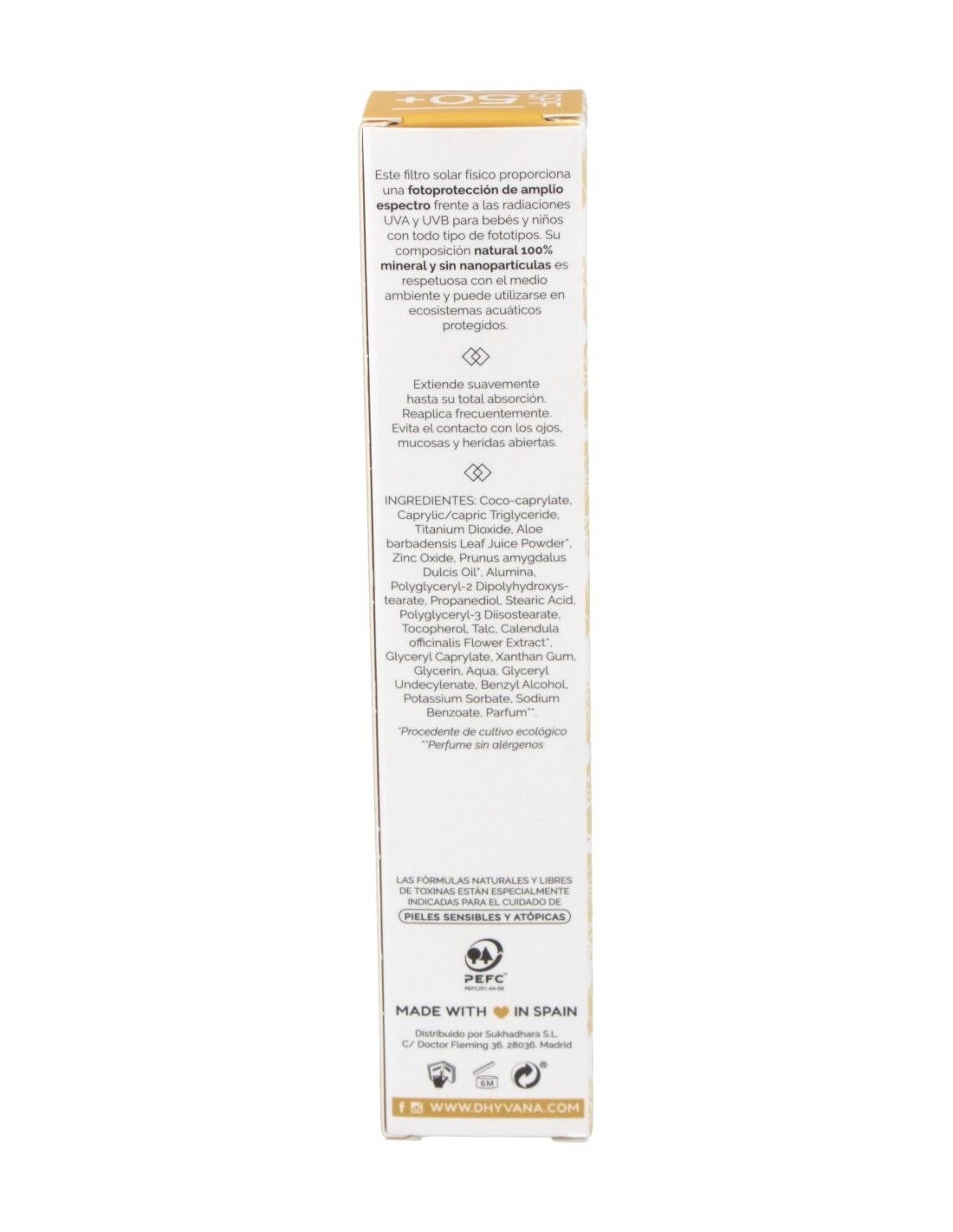 Protector Solar Spf50+ Eco Pediatrics® de Dhyvana es un filtro solar físico para bebés y niños con pantalla 100% mineral, indicado para todos los fototipos de piel. Esta crema solar proporciona una fotoprotección de amplio espectro frente a las radiaciones UVA y UVB desde los 0 meses de edad, evitando irritaciones cutáneas causadas por el sol.