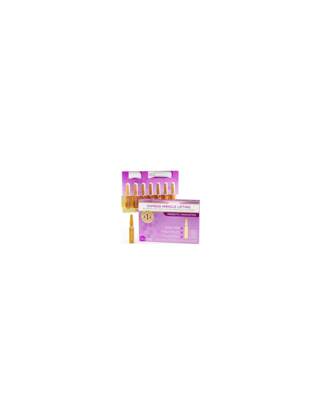 Ampollas ultra-concentradas con Ácido Hialurónico, Fermento Prebióticos de setas Pichia y Botánicos Terapéuticos de Kigelia, Raíz de Ziziphus, Raíz de Maral, Centella Asiática, and Goji. Rellena arrugas. Reafirma y eleva el óvalo facial. Este producto está certificado COSMOS NATURAL por la entidad independiente ECOCERT Greenlife, garantizando que el 100% de los ingredientes son de origen natural, con producción y prácticas agrícolas sostenibles y, por supuesto, sin crueldad animal.